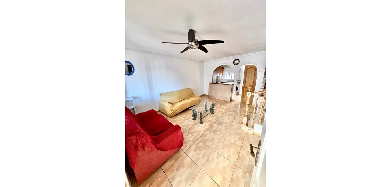 Spacious townhouse located in the sought-after Laguna urbanisation in Orihuela Costa, featuring a community pool and situated in a quiet residential area ideal for permanent living, holidays, or investment.~~The property offers 92 m2 built area with 3 bedrooms and 2 bathrooms. It features multiple terraces and a private solarium, perfect for enjoying the Mediterranean lifestyle.~~A key highlight is the private garage with direct access to the property, offering convenience, security, and additio...