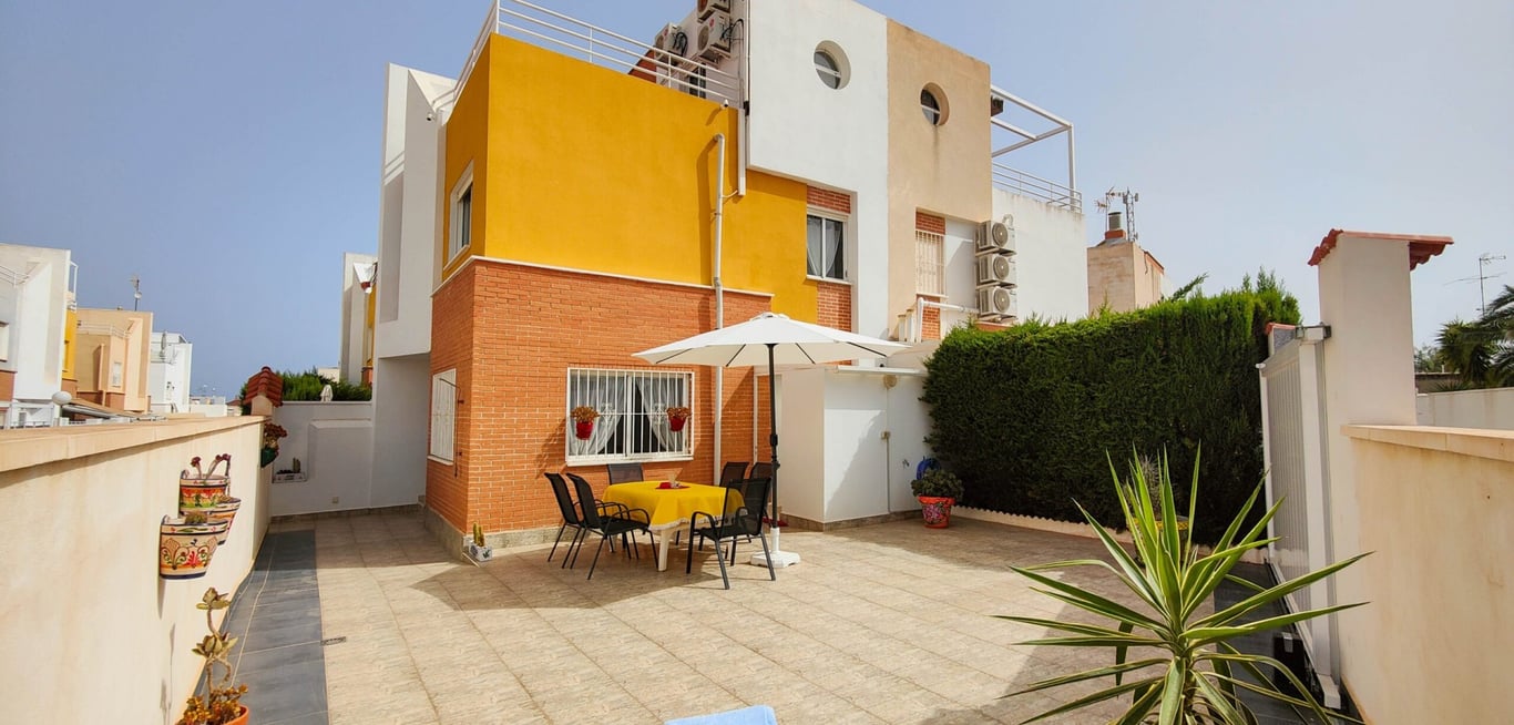 Beautiful corner quad house with a huge garden for sale in El Mirador de Los Altos, Orihuela Costa. This charming quad house is located in a well-established and peaceful residential area of Los Altos, featuring a beautiful communal pool surrounded by landscaped gardens. The property offers 3 bedrooms and 2 bathrooms, a bright and inviting living room, and an open-plan kitchen with direct access to the garden. Outside, you’ll find a very spacious corner garden with off road parking parking and ...