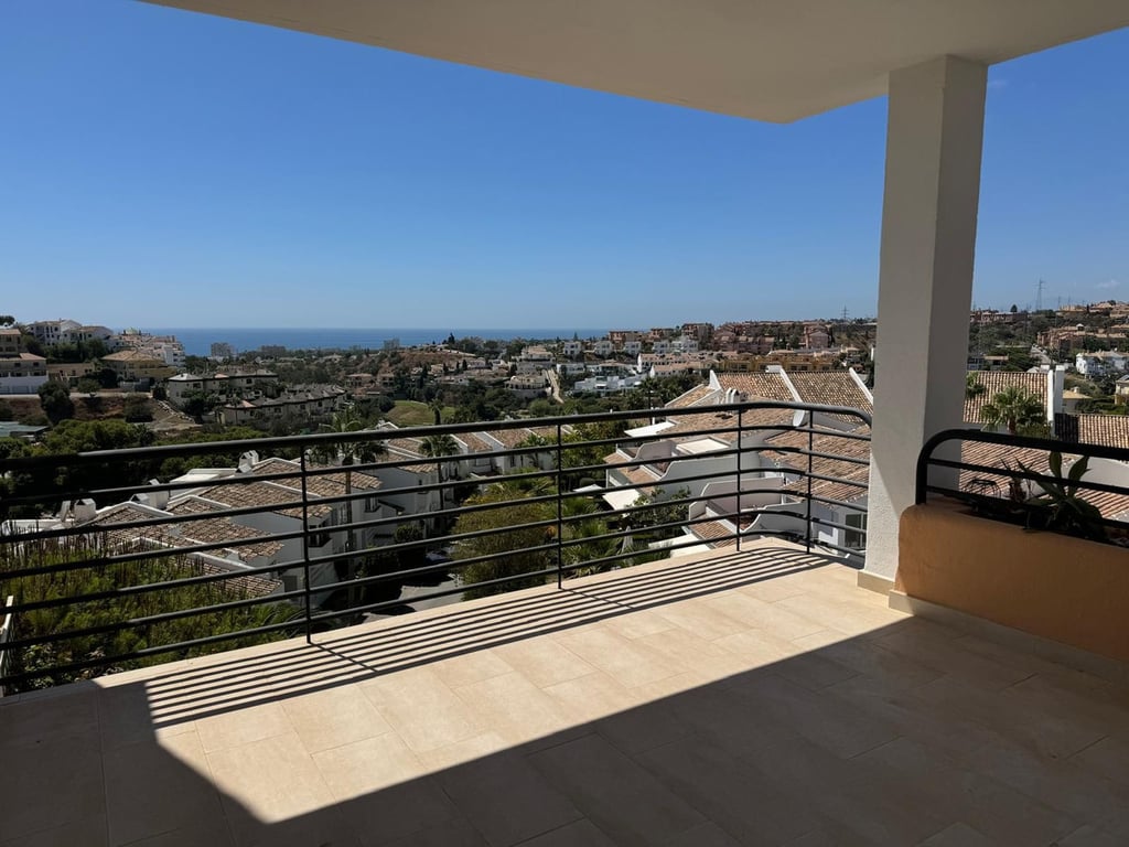 This elegant and spacious southwest-facing three-bedroom apartment is located in the exclusive Altos de Miraflores complex in Riviera del Sol. Its proximity to the renowned Miraflores Golf Club in Mijas Costa makes it a prime location on the Costa del Sol. With rental option to buy posibility. The property features a large living-dining room, a modern and fully equipped kitchen, three double bedrooms, and two bathrooms (one en suite). It also boasts a generous terrace with stunning sea views. T...