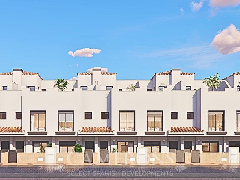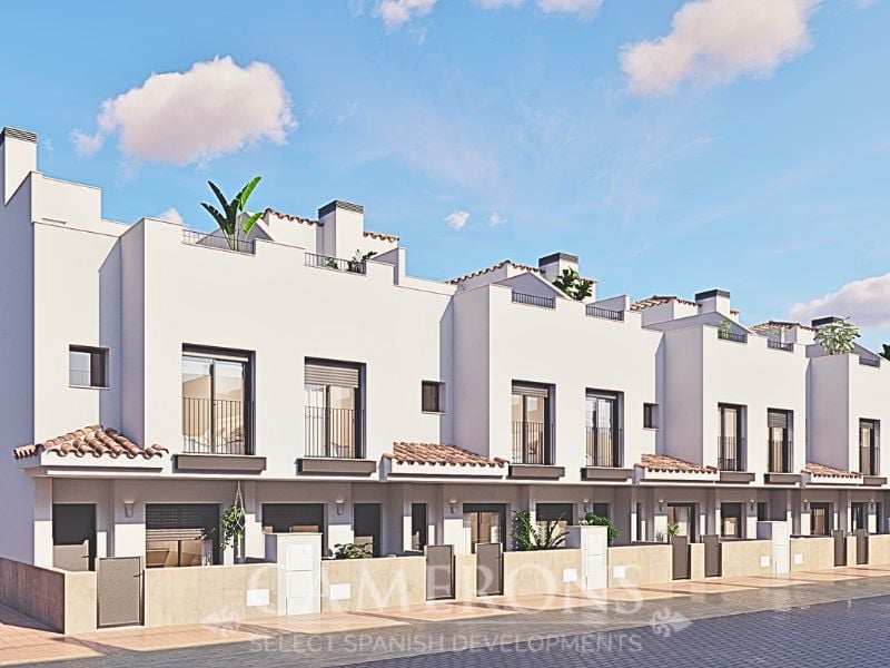 New 2 and 3 bed townhouses with communal pool in the town of Santa Rosalia, in an excellent location, just 5km from the beaches of the Mar Menor and only 1km from an 18 hole golf course.Modern properties with 2 and 3 bedrooms and 2 bathrooms, communal pool complete with private roof solarium with summer kitchen included. The end result will be a stunning development in an area that is situated between the town of Torre Pacheco and Los Alcázares. Torre Pacheco is a large inland town which has so...