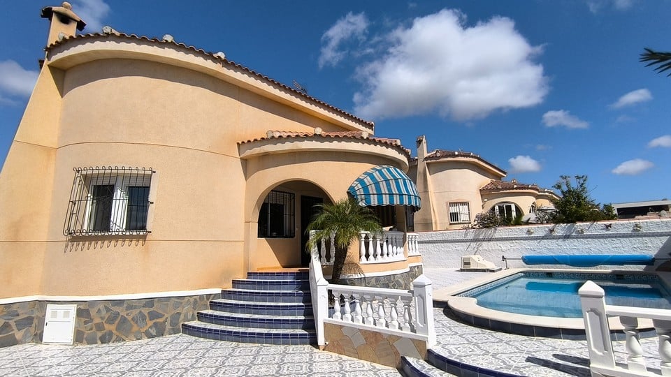 DETACHED VILLA WITH 3 BEDROOMS AND 2 BATHROOMS, PRIVATE POOL, PARKING, AIR CON, SOLARIUM, GOOD LOCATION IN CIUDAD QUESADA InterProperty Sales are proud to present this south-facing detached villa in Ciudad Quesada offering comfortable living in a prime location. The property sits on a 322m2 plot and includes a private swimming pool, off-road parking under a wooden carport and a handy storage shed. A private solarium on the roof provides excellent views and a quiet place to relax. The villa i...