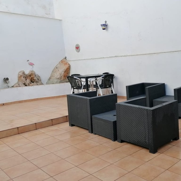 The entrance hall leads into a light and bright LIVING ROOM and off this is a front facing double bedroom with AIR CONDITIONING. On the ground floor there is a brand NEW modern, fully equipped KITCHEN with access to the rear large patio. There are also FRENCH DOORS in the lounge leading out to this area. The rear patio is very private and a great size, in this area there is also a new and modern SHOWER ROOM with a large walk in shower, wc and sink. There is also a SECOND KITCHEN/BAR with a UTILI...