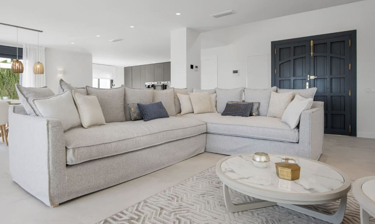 Beautiful fully renovated, key-ready villa in Los Flamingos Golf Resort offers a rare opportunity within an exclusive development, priced under 4 million euros. Completed in February 2024 and designed by Marbella Interiors, it exudes modern luxury and comfort. The three-level villa provides panoramic sea views from each floor, accessible via a sweeping driveway and pedestrian entrance. The landscaped garden and infinity-edge pool create a stunning, low-maintenance outdoor space with all-day sun,...