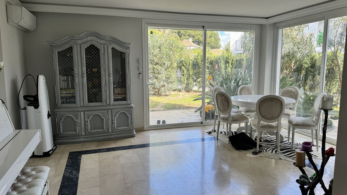 Lovely corner 3 bed 2 bath townhouse located in Benamara area. Luxurious living in a renovated townhouse nestled within a gated complex. Enjoy well-maintained gardens and an expansive swimming pool. Inside, find a bright living room with a cozy fireplace. The modern kitchen seamlessly flows into the dining area. A laundry room, spacious bedroom, and bathroom complete the main level. Step onto the terrace and soak in the green garden. Upstairs, two bedrooms, a bathroom, and a dressing room await....