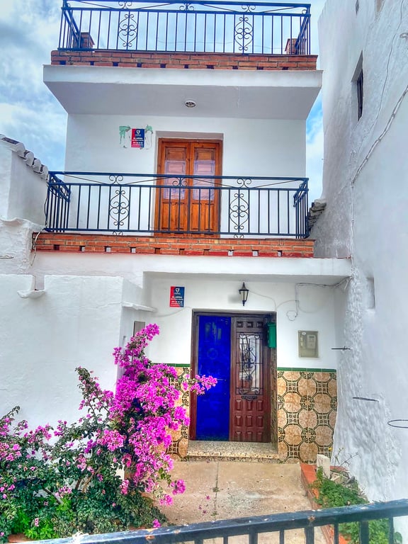 Discover the charm of rural life in Salares, a picturesque village located on the Mudéjar route, in the heart of the Axarquía region. This cozy townhouse offers you a refuge full of history and comforts. As you enter the house, you are greeted by two spacious living rooms, one of them with a warm fireplace that invites evenings by the fire on cooler nights. From one of the living rooms, a discreet door leads to an impressive cellar, which once was a stable, and now unfolds into two spacious roo...