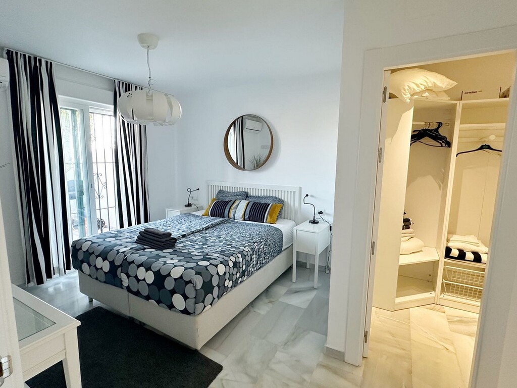 Discover this elegant ground-floor apartment, ideally located close to shops, transport, and all amenities, in a well-connected area just minutes from golf courses and leisure facilities. Recently renovated, the property offers a modern and inviting atmosphere, featuring marble floors and hot/cold air conditioning. It comprises four spacious bedrooms, including a master suite with an en-suite bathroom and walk-in wardrobe, as well as a second bathroom serving the remaining bedrooms. The fully f...