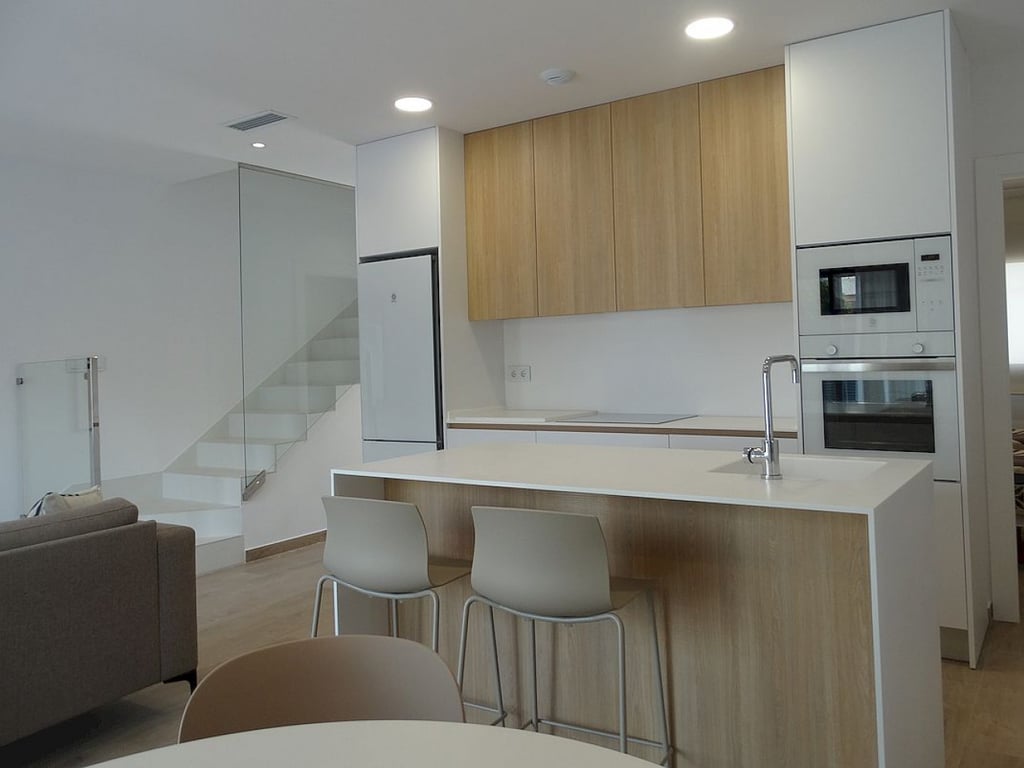 Promenade Ribera is a new exclusive development of only 11 townhouses with private pool in Santiago de la Ribera, just 100 metres from the beach. The properties comprise of three double bedrooms (with fitted wardrobes), three bathrooms (en-suite to the master bedroom), fully-fitted modern kitchen (with breakfast bar) and open-plan living/dining area, leading to a tiled garden with private swimming pool and off-street parking. The rooftop solarium is accessed via stairs from the first floor. ...