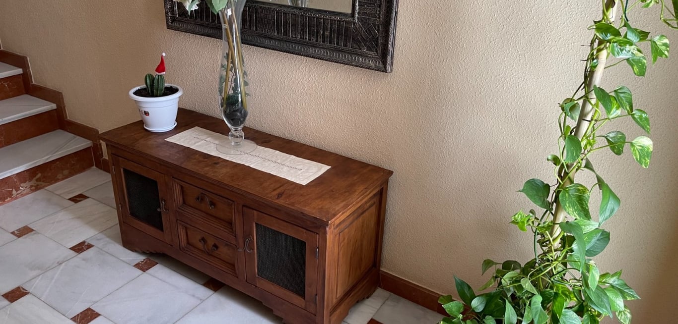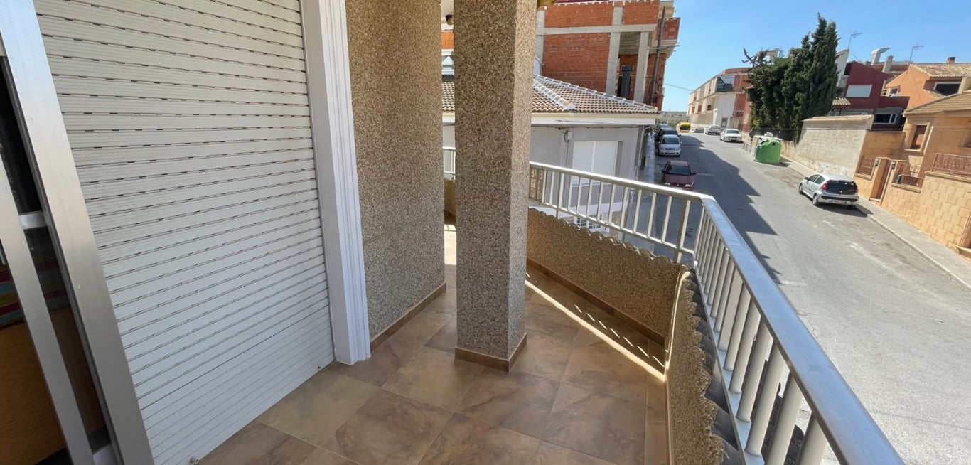 Terraced house in San Miguel de Salinas. Ground floor has a spacious living room with fireplace, entrance for several cars, bedroom and bathroom. The main house is accessed by stairs. Here there is a living room with fireplace and bright living room with access to the terrace. First floor has two bedrooms, bathroom with shower, kitchen with access to the patio/laundry. The house has its own solarium. It is sold furnished.