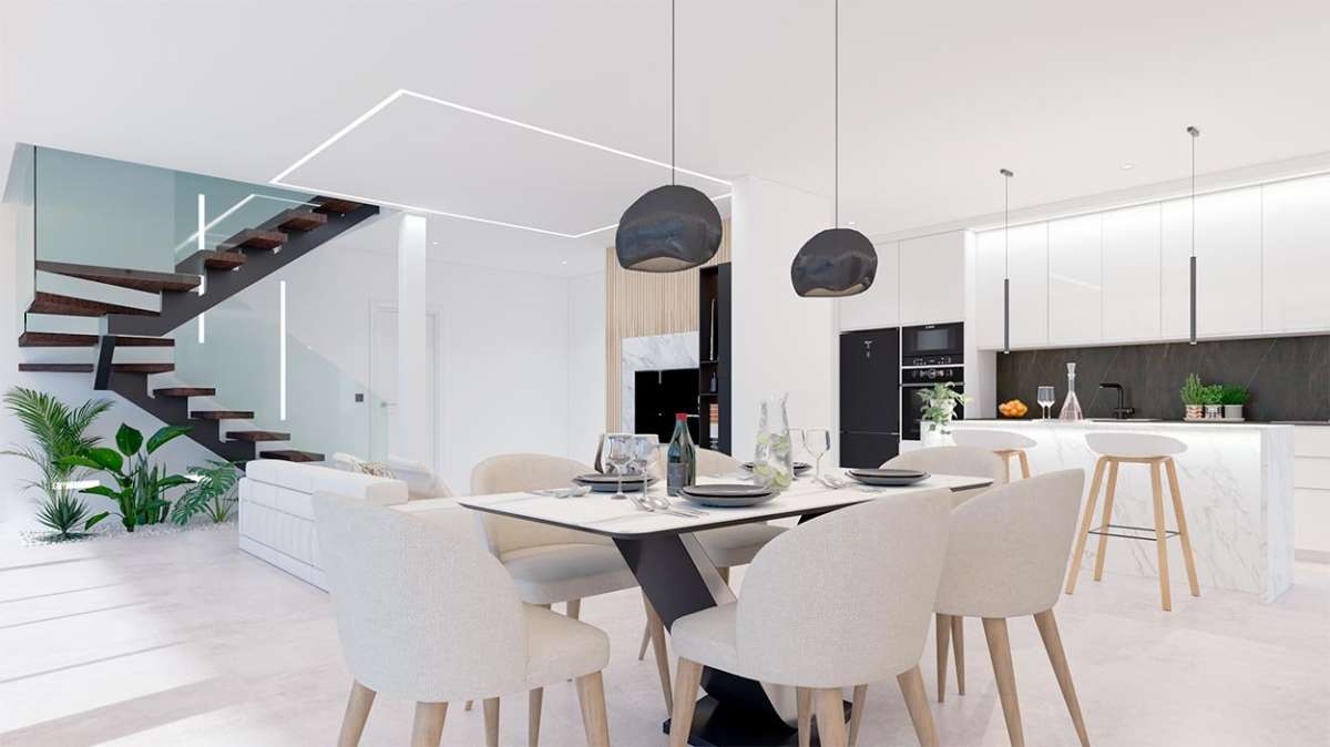 It all starts with the garden, located next to the living room. It is divided into a porch and a landscaped space where a private pool welcomes you to your new home; the porch will be the center of your new life and will make you want to stay at home. We are talking about a space totally oriented and designed for relaxation and tranquility.Entering through the large window that separates the porch and the interior, we find the main room, a living-dining-kitchen that perfectly takes advantage of ...