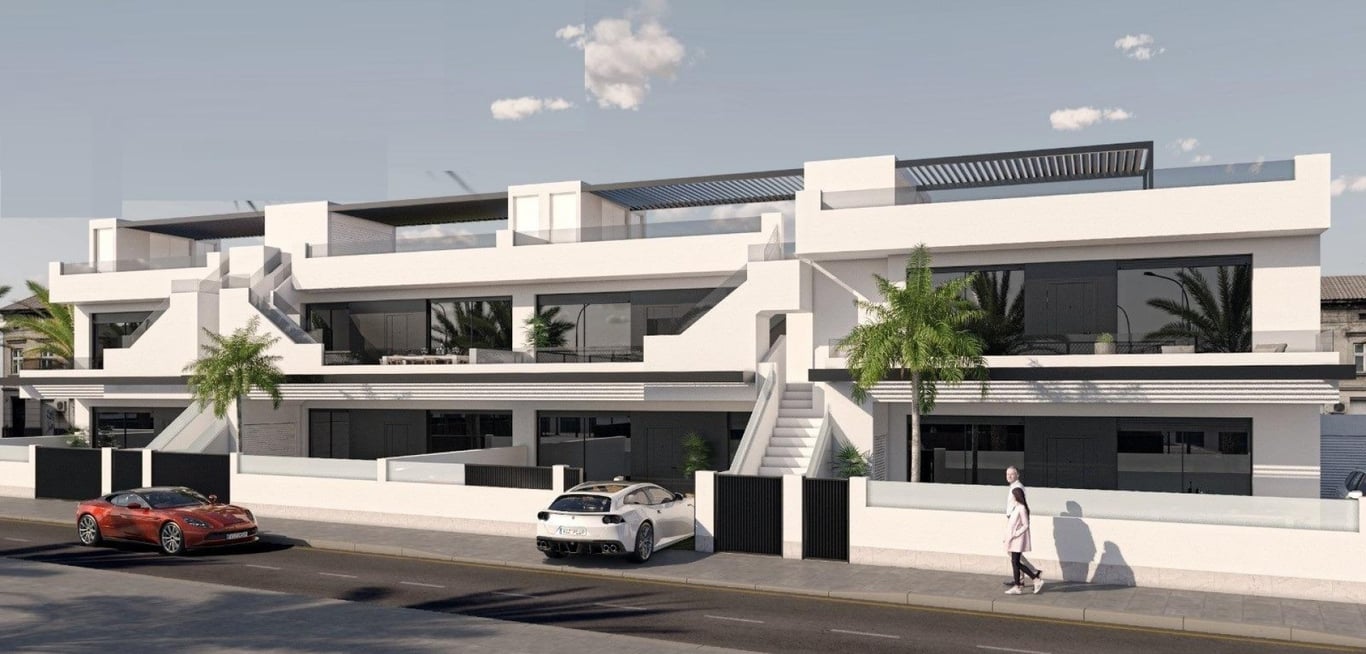 NEW BUILD BUNGALOW APARTMENTS IN SAN PEDRO DEL PINATAR New Build residential complex of beautiful modern 3 bedrooms bungalow apartments in San Pedro Del Pinatar . The ground floor bungalow have a terrace with private pool. The top floor bungalow have a large solarium with private pool . All bungalows has a parking space and storeroom. San Pedro del Pinatar's privileged location on the Mar Menor and Mediterranean coastline it attracts those with an interest in sailing and watersports, providi...