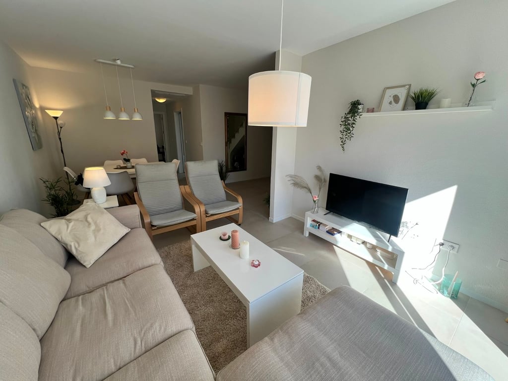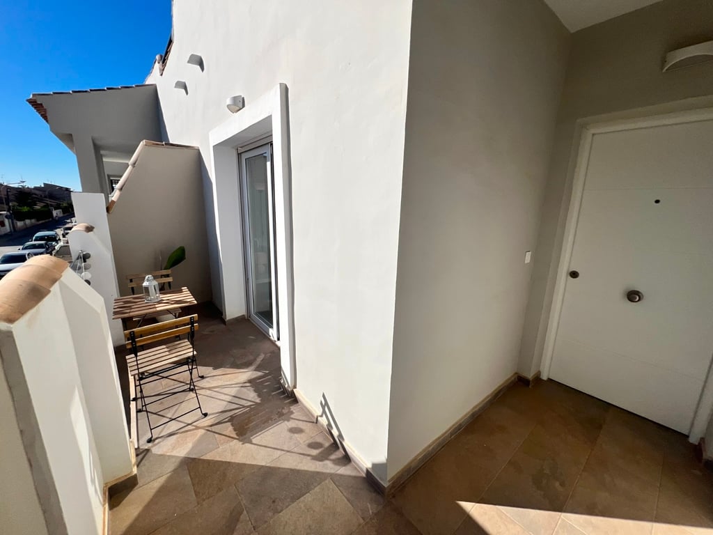 A very well kept and modern townhouse on the first floor, the property has 4 bedrooms and 2 bathrooms with a balcony off the lounge, a further patio off of one of the bedrooms and a large sun terrace off of the master bedroom. There is no community here but a large public sports center is only 200 meters away and has an inside and outside pool, tennis courts, archery, football pitches and gymnasium. The busy town center of San Pedro del Pinatar is a short walk away.