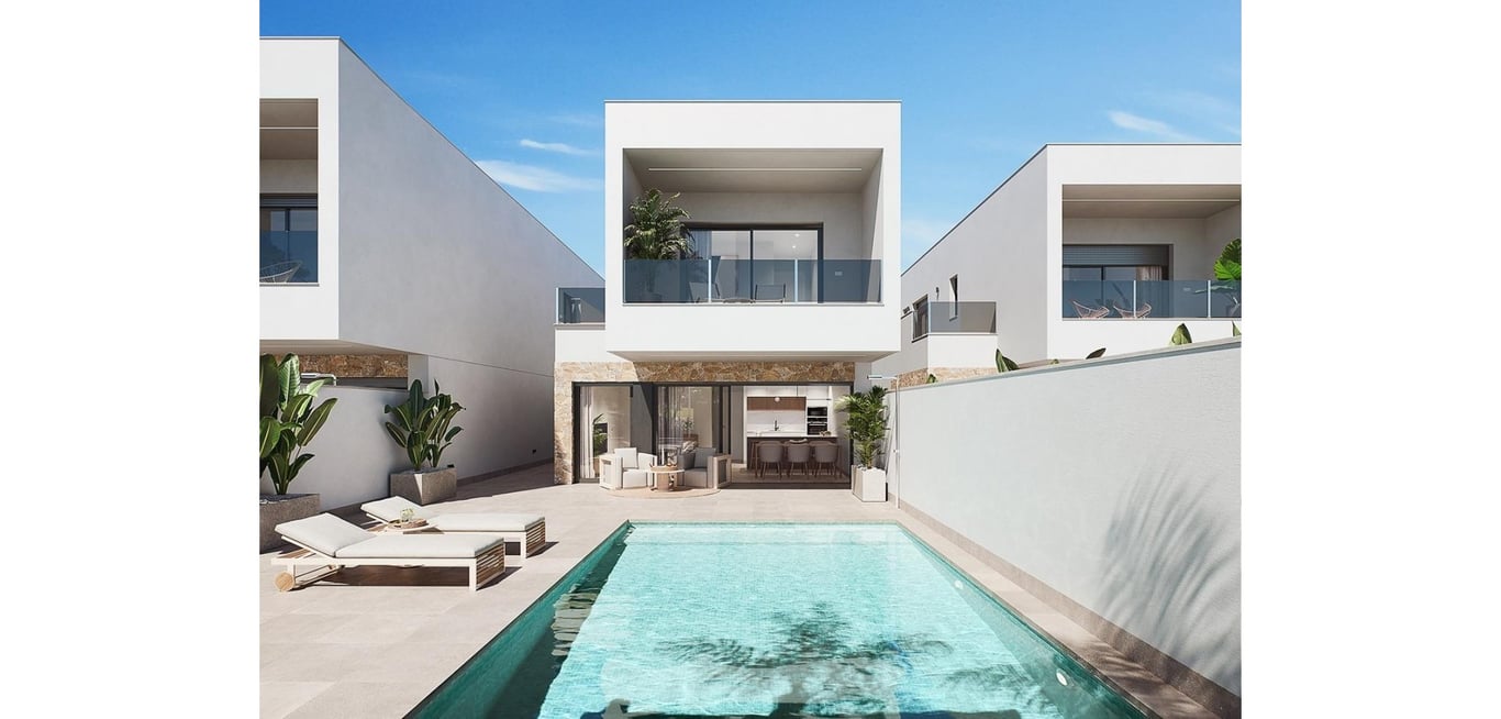 Modern New Build Villas with Private Pool in San Pedro del Pinatar Contemporary Design and Premium Quality Living Discover the third phase of this exclusive residential project in San Pedro del Pinatar, where modern architecture meets comfort and functionality. These 14 semi detached villas are designed with a minimalist style and high quality finishes, offering an elegant and sophisticated living experience on the Costa Calida. Each villa features 3-4 spacious bedrooms, 3 bathrooms, private sw...