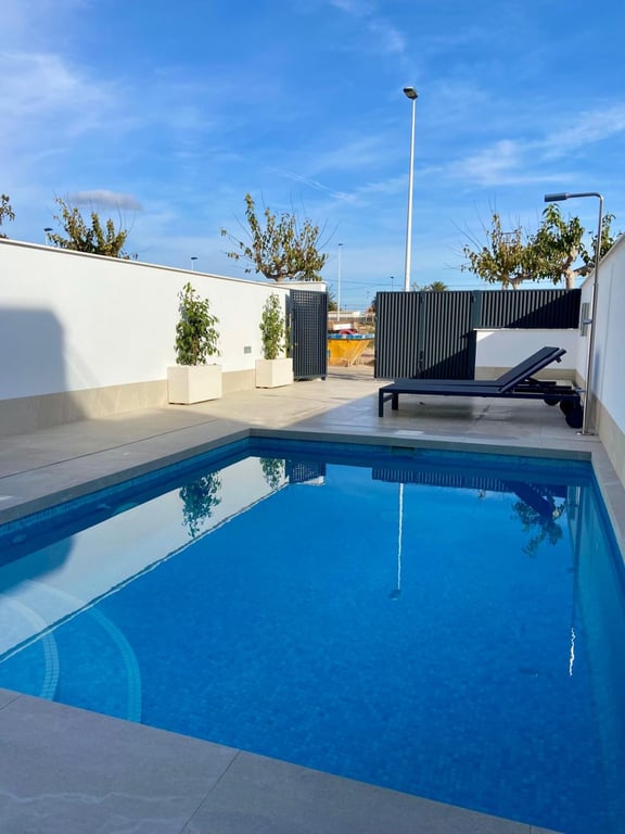 NEW DETACHED VILLAS WITH 3 BEDS AND 2 BATHS, PRIVATE POOL, SOLARIUM, PARKING, AIR CON, SAN PEDRO DEL PINATAR InterProperty Sales are delighed to offer this family home complex in a rapidly growing residential area of San Pedro del Pinatar, on the border between the southern Costa Blanca and the Costa Cálida. An excellent location, with a wide variety of services and amenities available in both areas, such as supermarkets, shops, restaurants, shopping centers, and hotels. For outdoor sports...