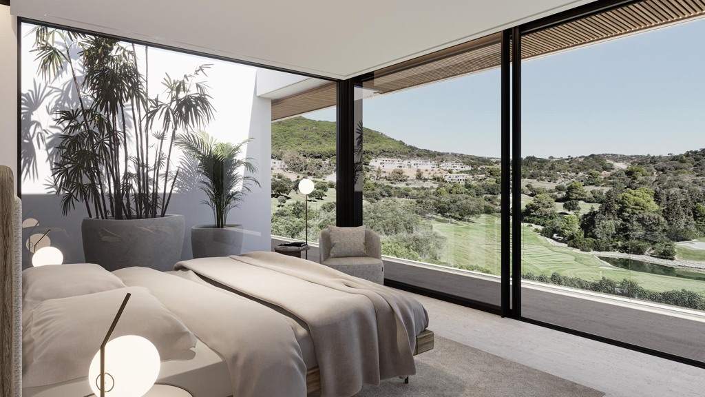 Surrounded by nature, this villa is designed to make the most of its location. Large floor-to-ceiling glass panels allow for the best exposure to light and the most breathtaking views from every room of this unique villa. Thanks to its minimalist architecture, the design connects the interior spaces with the surrounding natural environment, creating a seamless connection between the indoor and outdoor areas. The masterfully executed design opens up the views from the pool area to the golf course...
