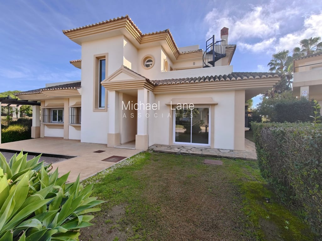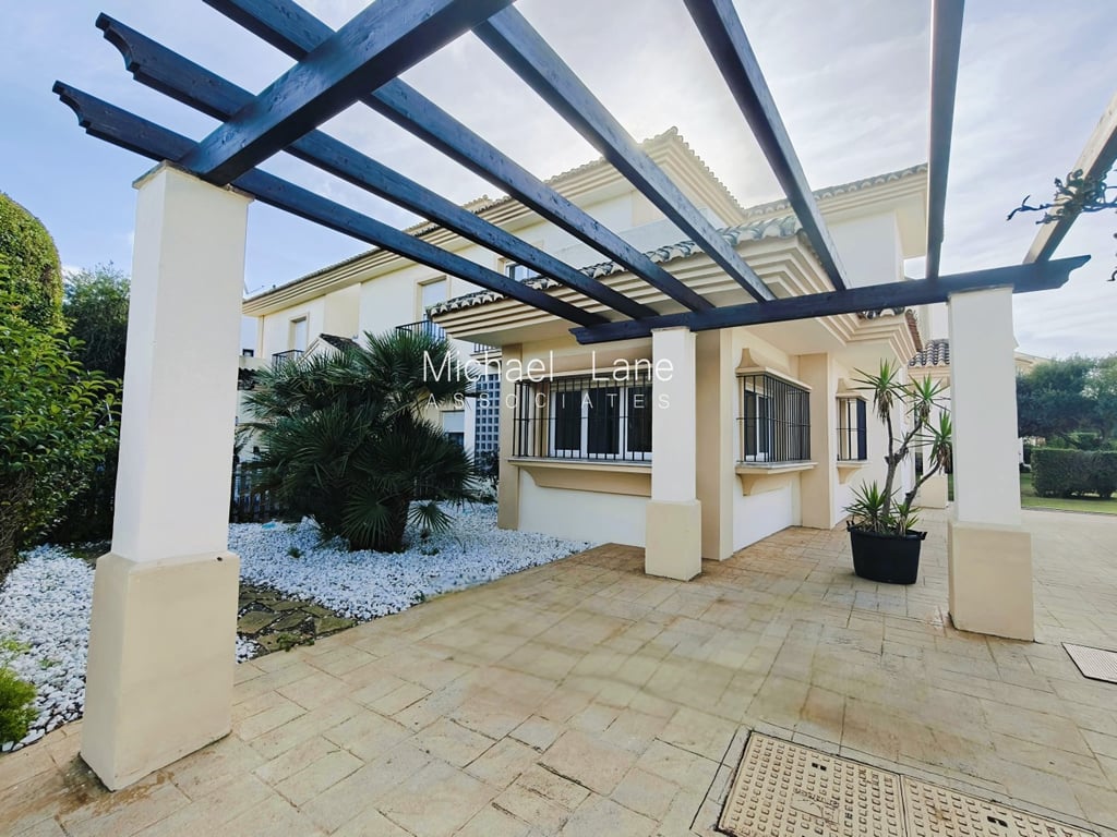 Located in the prestigious San Roque Club, this lovely 3-bedroom semi-detached house combines comfort, privacy, and beautiful natural surroundings. Set between two world-class golf courses and within a secure, gated community with 24-hour security, it offers a peaceful and exclusive place to call home. The property features a bright and spacious living room with a cozy fireplace and a dining area, seamlessly connected to the large, newly renovated and fully equipped kitchen through a wide openi...