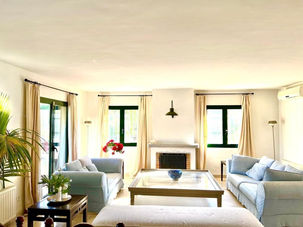 Located in Sotogrande Alto, this elegant semi-detached villa is set within the Sotogolf community, offering 24-hour security and an unbeatable location next to the renowned Valderrama Golf Course and just minutes from the Sotogrande International School. The property is distributed over three levels, combining spaciousness, natural light, and comfort. On the ground floor, an entrance hall leads to a spacious living and dining room with a fireplace, a fully equipped kitchen with access to an out...