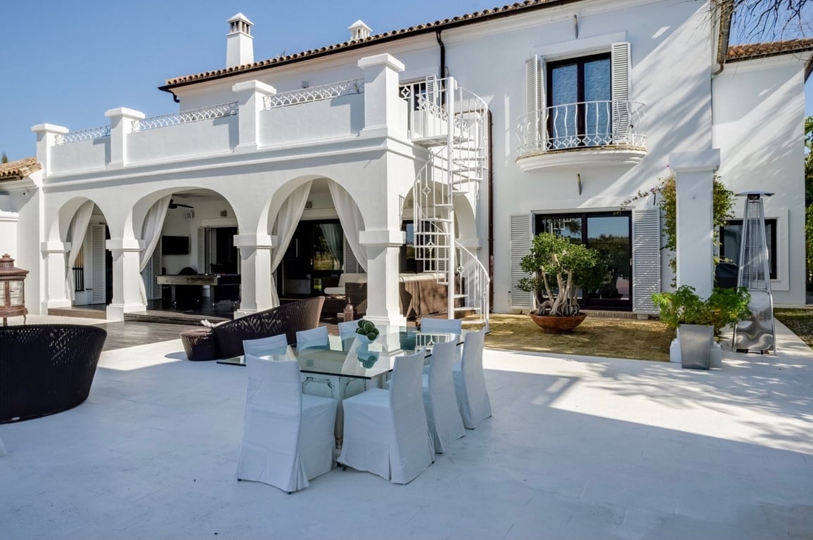 Located in the heart of the prestigious San Roque Club, a secure gated community with 24-hour security, this elegant villa enjoys direct access to the renowned Old Course and is ideal for families and golf enthusiasts seeking privacy and comfort. Set on a generous 2250 m2 plot, the property offers approximately 554 m2 of built area, complemented by 109 m2 of terraces, as well as additional courtyard areas that enhance the outdoor living experience. The villa spans three levels and features fiv...