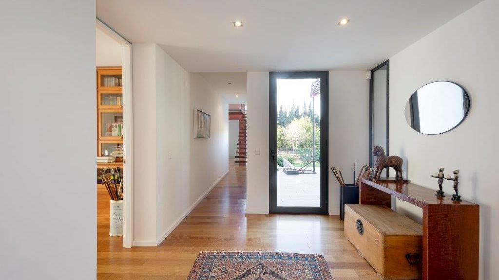 GILMAR presents this minimalist house of 410 m2 built in 2005 on a large plot of 3.400 m2 with garden, swimming pool, orchard and access and parking area. All the rooms have access to the outside, large windows that give it all its luminosity. The house is on two floors, a lower floor in the shape of an L, with high ceilings of more than 3 metres so that the feeling of spaciousness is much greater and a flat on the upper floor with two terraces. Large porch with swimming pool-solarium, which ...
