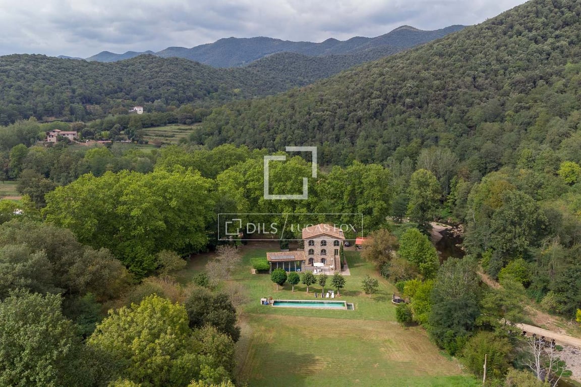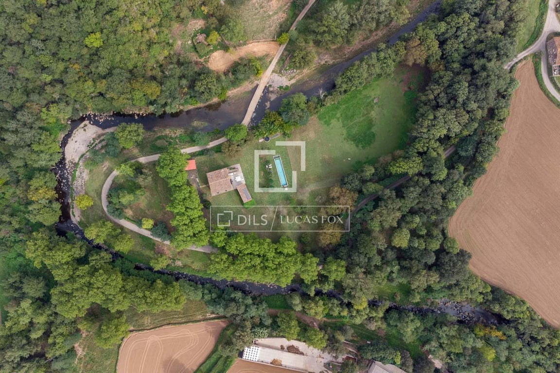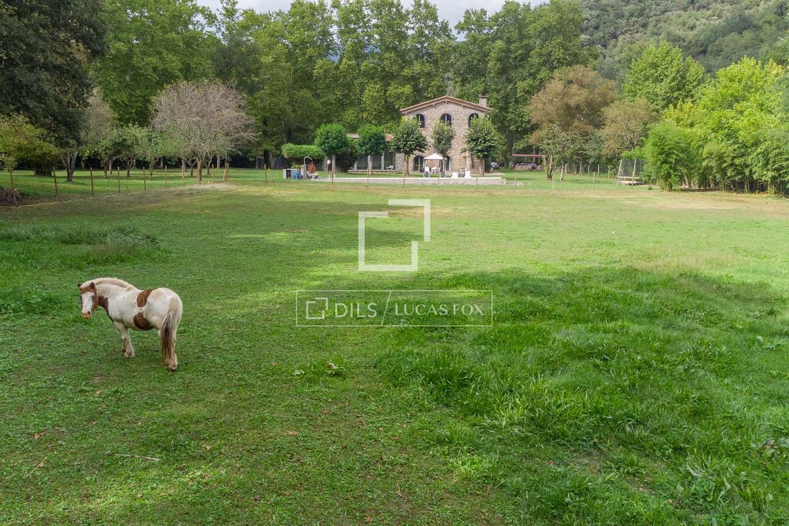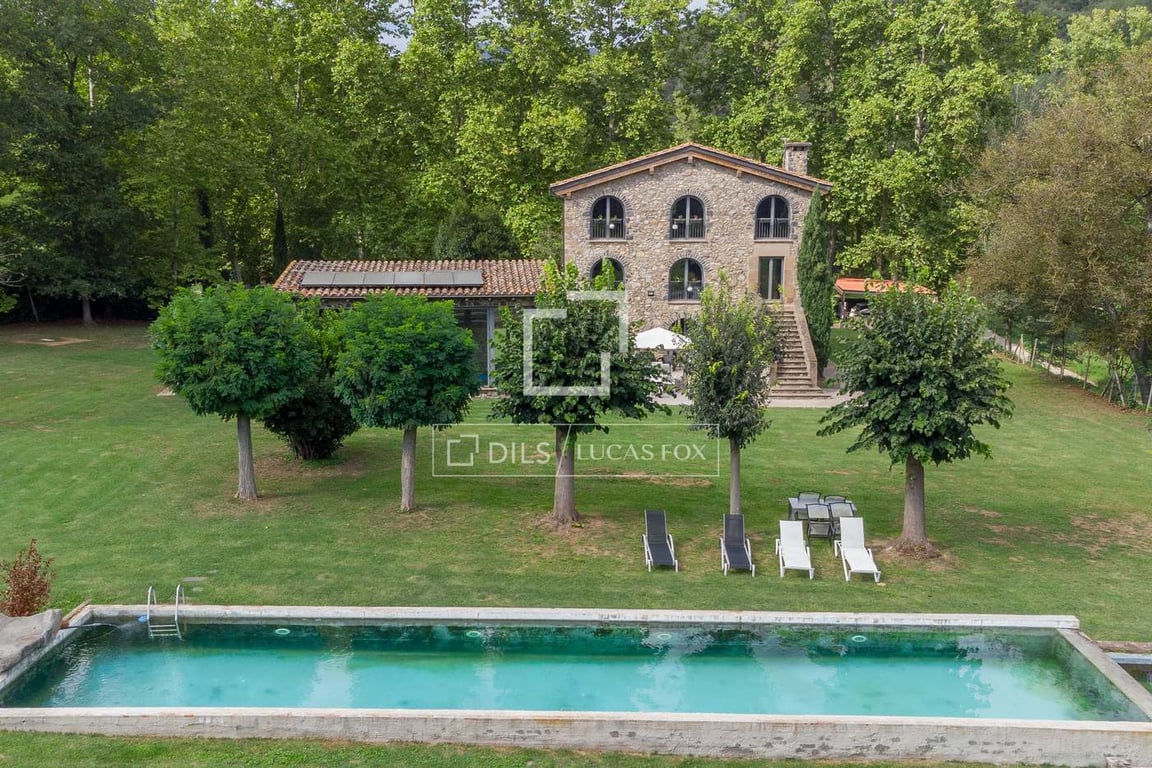 This property is located around a meander of the Fluvià river, surrounded by green meadows and wild nature and at the same time located just one kilometer from an urban center with all amenities. The country house was rehabilitated approximately two years ago and currently harmoniously combines comfort and the typical qualities of a modern construction, such as underfloor heating, open spaces, metal structures or top-quality insulation, with the most traditional materials. like the stone on it...