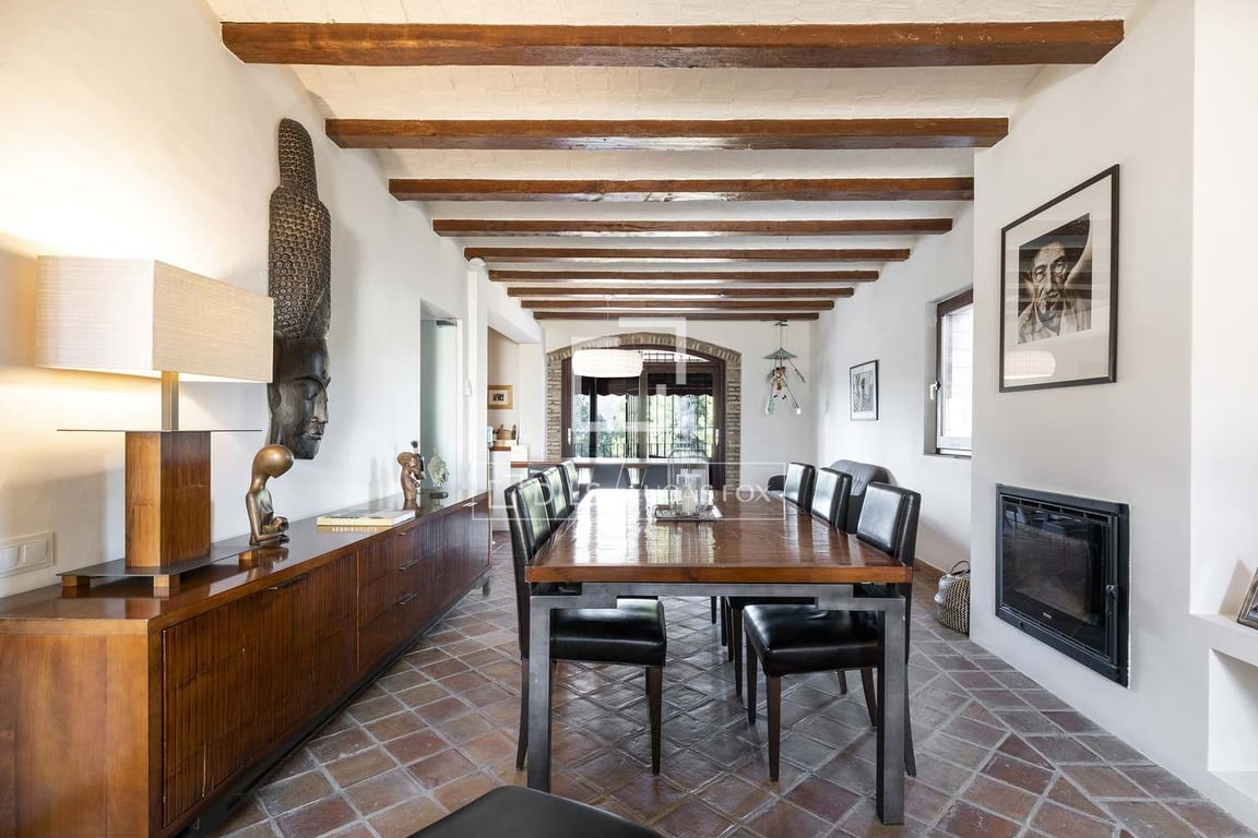 This large Catalan country style house was built in 1998 and is located in Palou Alt, just on the border of the town of Sant Pere de Ribes, a short walk to the shops and only a 5-minute drive to the centre of Sitges. The property has been recently renovated to improve its comfort and style using only the finest quality materials: a combination of terracotta clay tiles throughout the house, hard wood double glazed windows imported from Germany, under floor heating and exposed wooden beams with Ca...