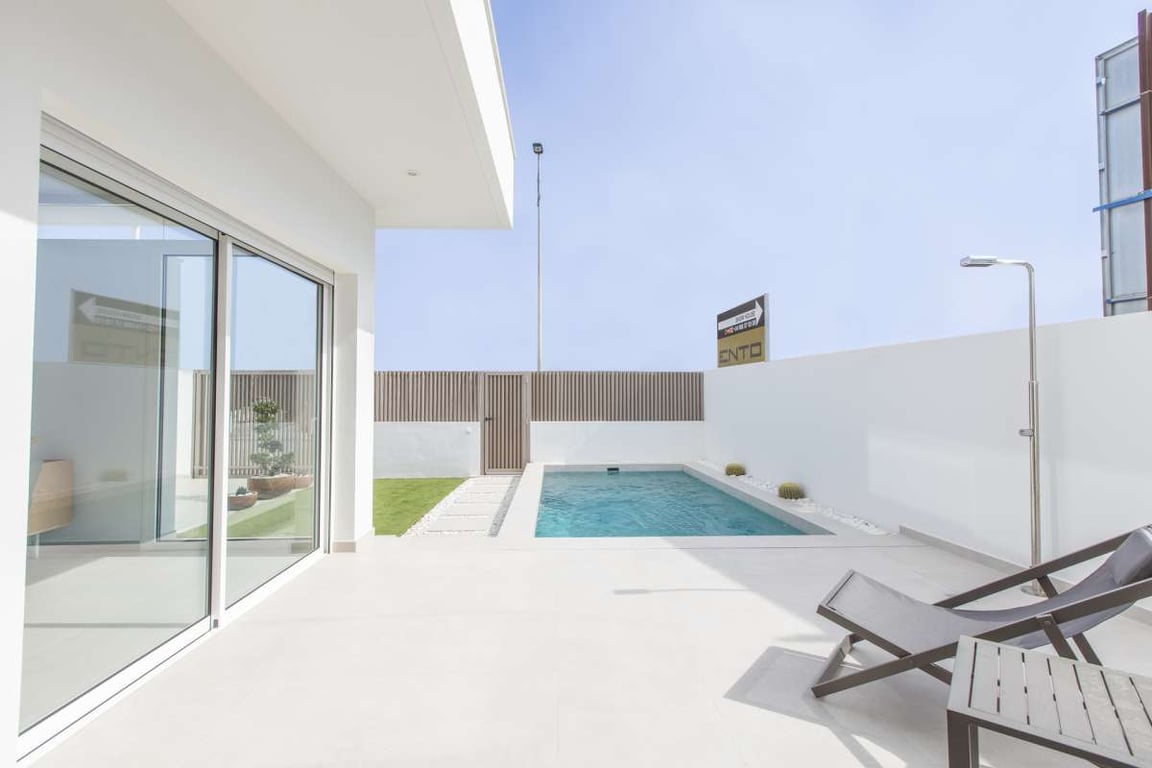 Introducing a new development of detached villas in San Javier, designed to offer maximum comfort and luxury in a privileged location. These newly built villas are distributed over two floors, plus a large roof terrace offering panoramic views of the surrounding area. With a constructed area of 127 m2 and a living area of 105 m2, each villa has 3 bedrooms and 3 bathrooms, a bright living room with open plan kitchen and direct access to the terrace, as well as a private garden with swimming pool ...