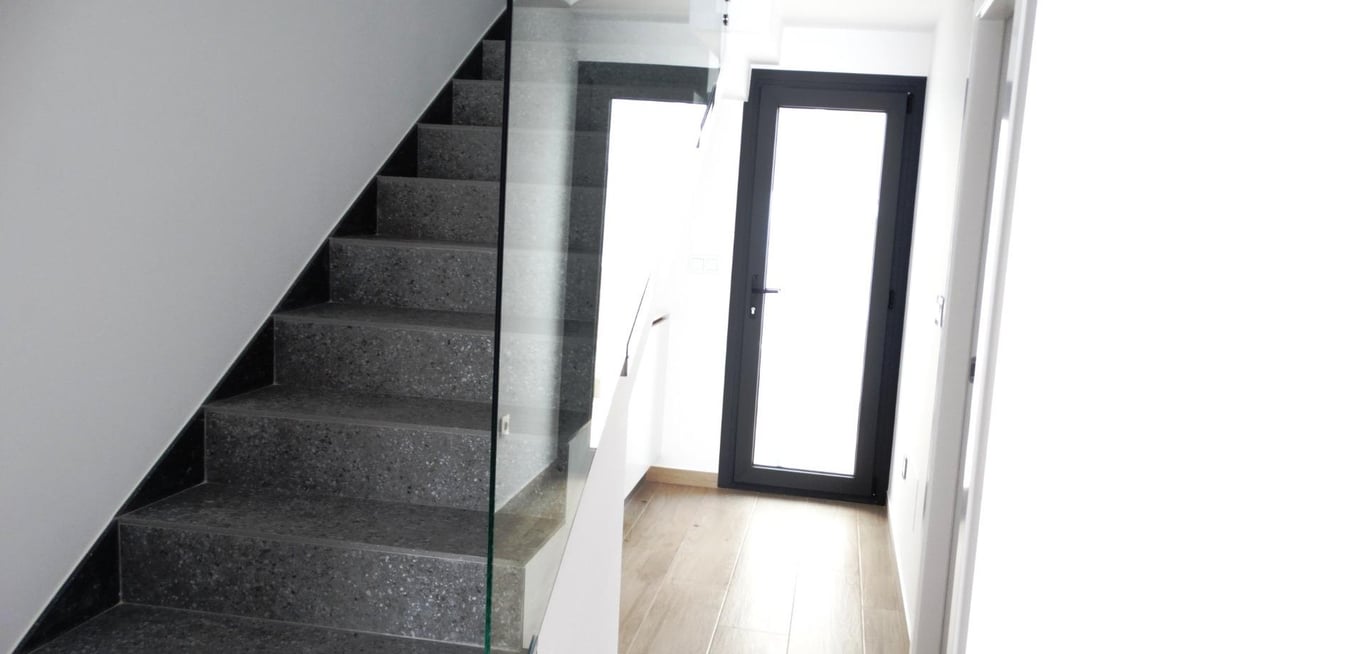 NEW BUILD TOWNHOUSES IN SANTIAGO DE LA RIBERA New Build development of 11 townhouses in Santiago de la Ribera, 100 metres from the beach! Beautiful properties with 3 bedrooms and 3 bathrooms, open plan kitchen with living room, fitted wardrobes, terrace, solarium, private garden with swimming pool and parking space. Just 5 minutes walk along the promenade, next to the yacht club, will take you to the centre of Santiago de la Ribera, with all the services at your fingertips, street market, ba...