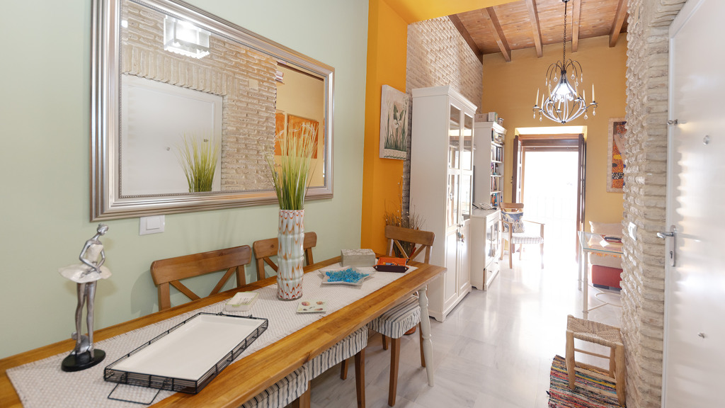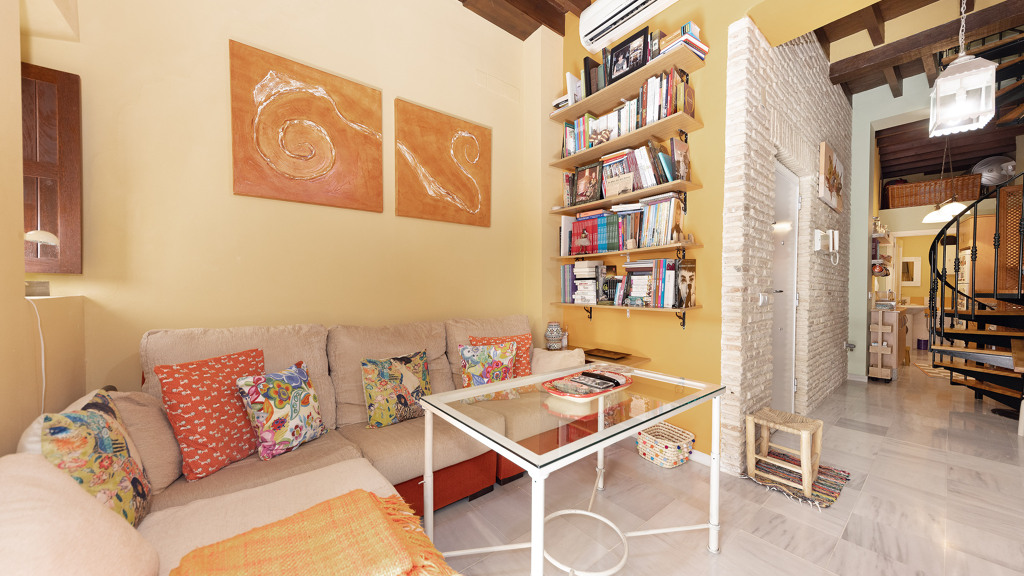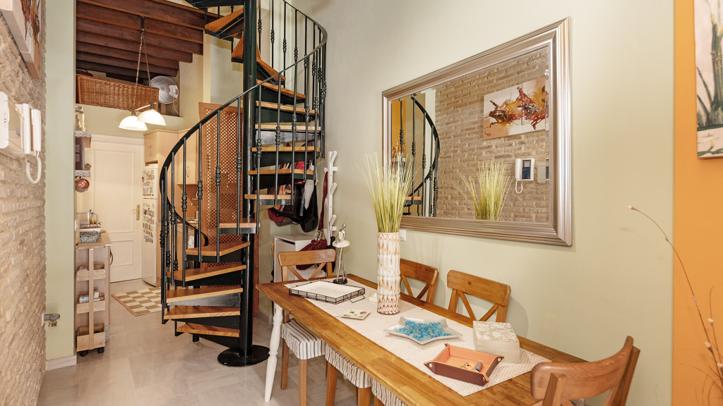 69sqm duplex flat with a charming 11sqm terrace in the most historic area of Triana, Seville, just a few metres from the emblematic Plazuela de Santa Ana. This property is located in a building refurbished with exquisite taste and top quality materials, offering a unique opportunity to live in one of the most traditional and vibrant areas of the city. On the first floor there is a cosy living room with a balcony overlooking the street, a kitchen with an exterior window and a guest toilet. The f...