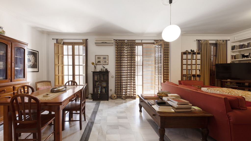 Elegant townhouse with spectacular views of the Guadalquivir River, with more than 500m2 and excellent possibilities. The house is divided into two distinct areas: the ground floor was once a local dedicated to hospitality with spacious rooms and open terrace with views. It has a huge storage area and two parking spaces. The second floor houses the residential area, with 5 bedrooms with fitted closets, 3 bathrooms, splendid living room with balconies and separate kitchen. It also has a tiled pa...
