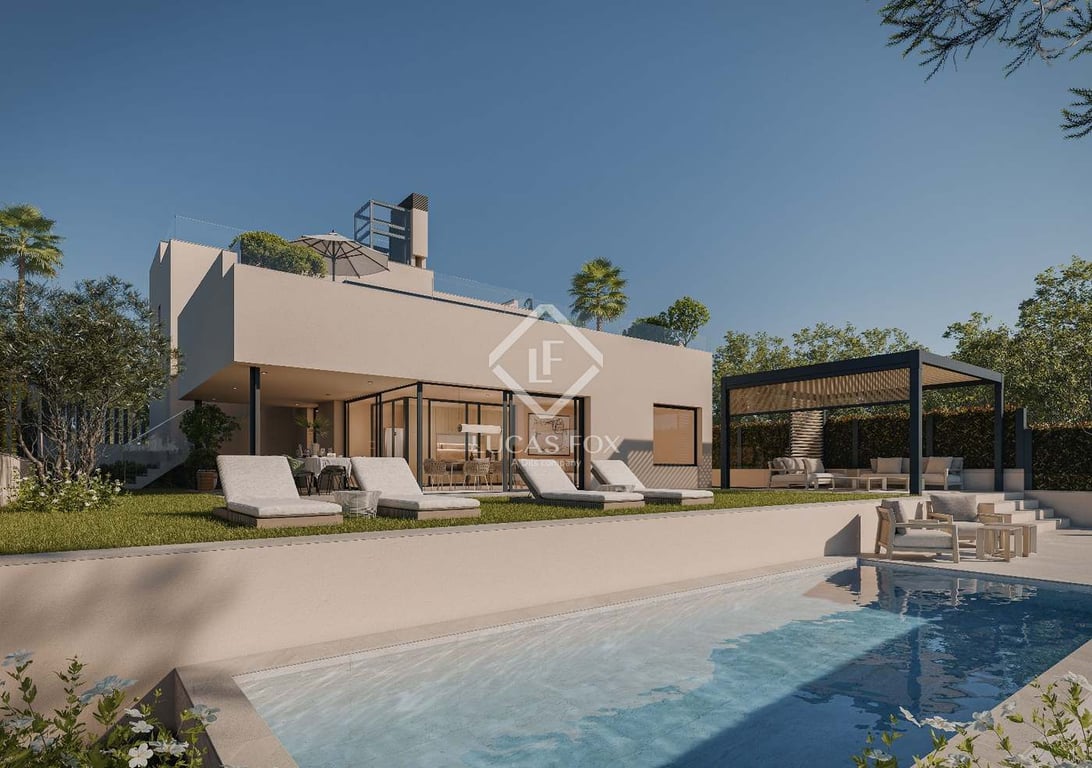 This striking new build contemporary villa, due for completion by summer 2025, is located in one of the newest areas of Sitges, surrounded by park land, trees and pedestrian walk ways, along with other attractive new build properties, as well as being just a short walk from the town centre and beach. This is one of the few villas in the area with large terraces boasting impressive sea views, with a 100 m2 terrace on the first floor and a fabulous roof terrace with a 360º panorama. These views ...