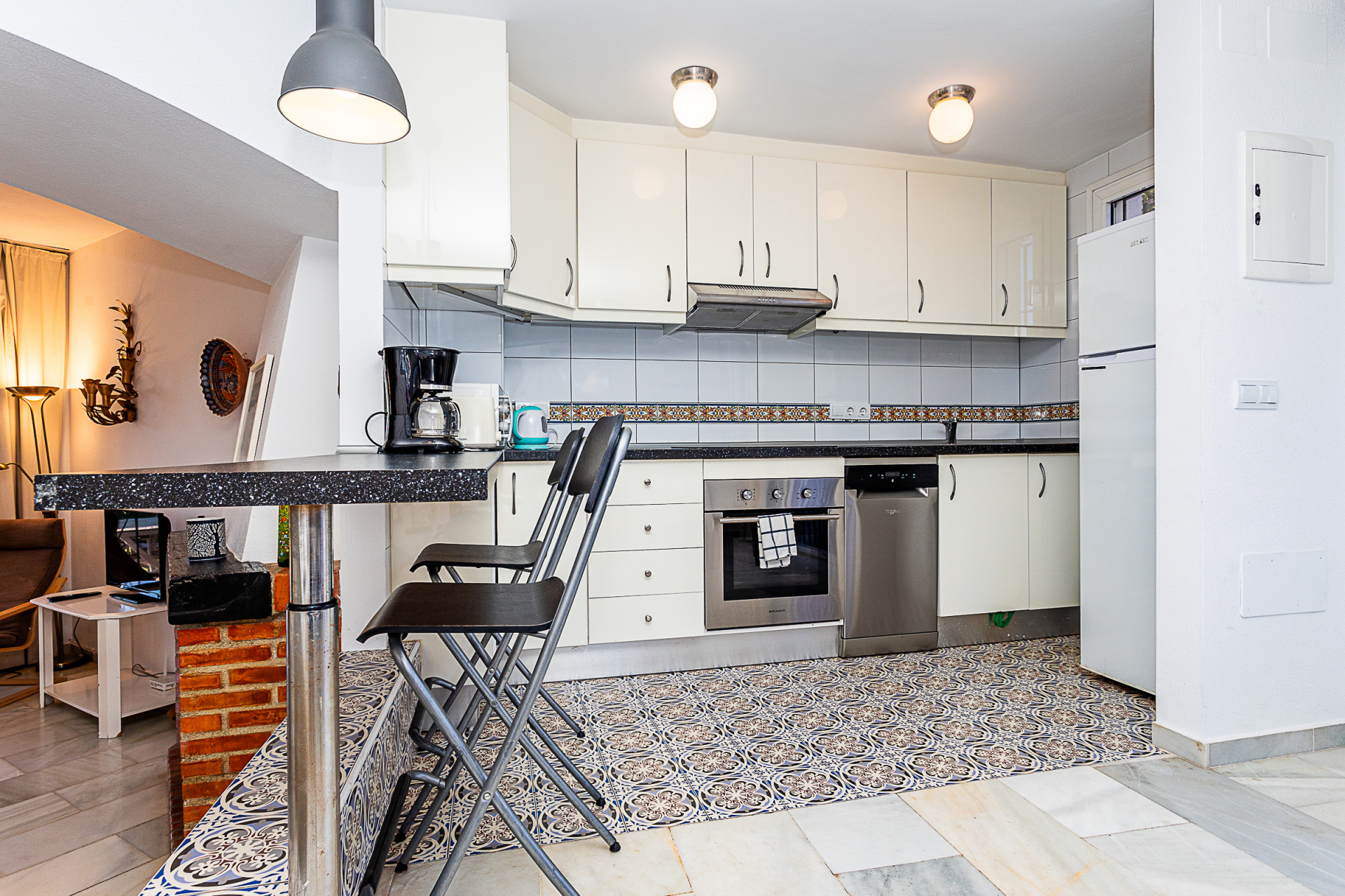 Nestled on a quiet street in the sought after area of lower Calahonda, this delightful three-bedroom townhouse is within easy walking distance to all amenities and the beach. You enter the home through a welcoming rear patio that leads into a split-level living area. The open-plan kitchen and dining space flows seamlessly into a cozy lounge featuring a fireplace, with direct access to a covered terrace. From here, you can enjoy the beautifully maintained communal gardens and swimming pool. Upsta...