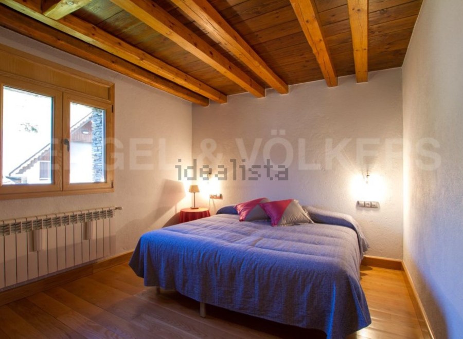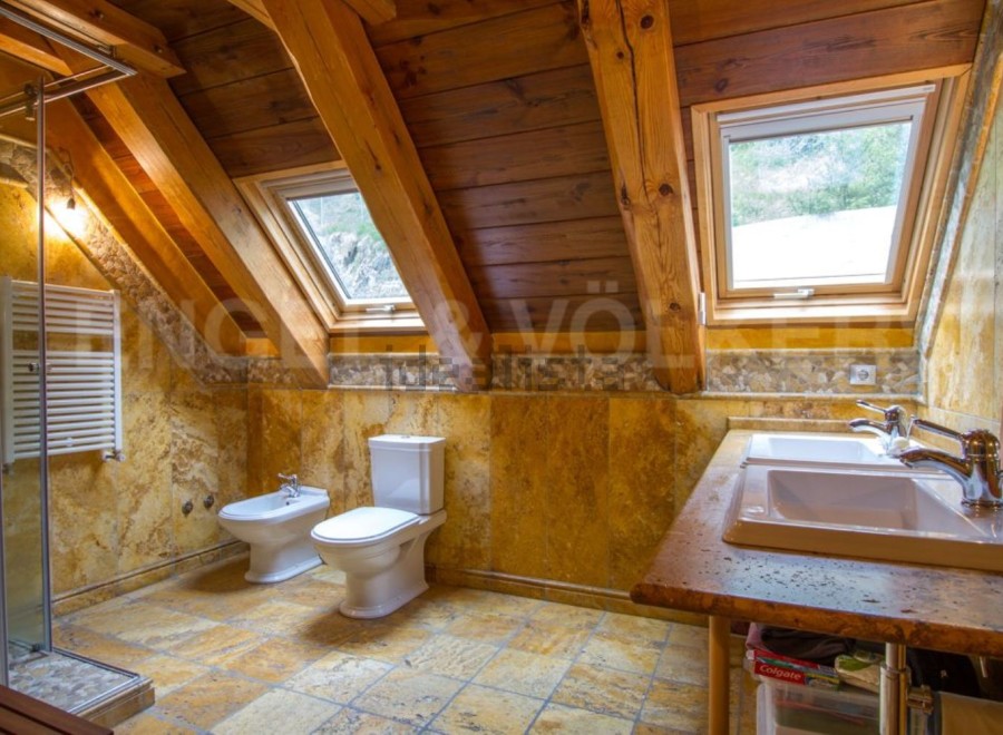 This wonderful independent family home is located in the heart of the Aran Valley, in the capital of Vielha. The southeast-facing aspect of the property guarantees sun throughout the day and its elevated position offers wonderful views of the Valley. Upon entering the house from the main entrance, we find a large entrance hall, a room, an office and a bathroom.To the right we find the living room with a wonderful stone fireplace and access to the large front terrace.The ceilings were built wit...