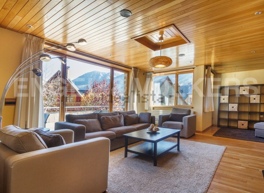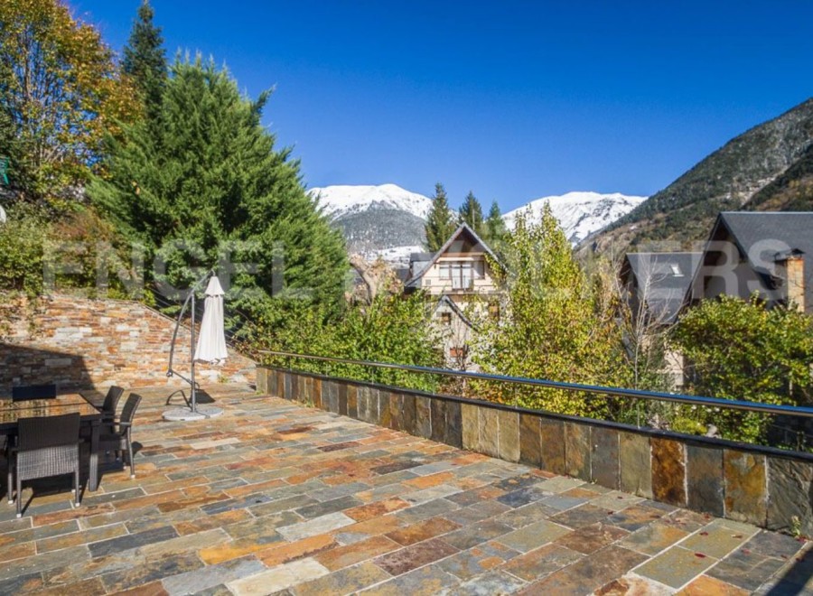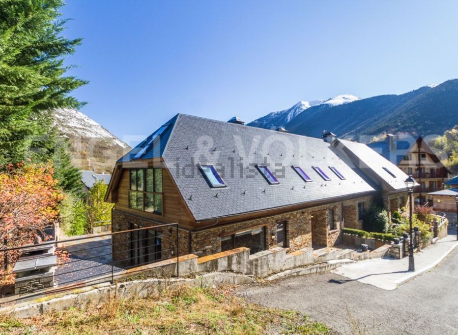 Magnificent corner townhouse in Vielha It is located in a quiet area 3 minutes walk from the center of Vielha. The 344 m2 of housing are distributed over 4 floors: The ground floor has a nice hall with fitted wardrobes, followed by a living room with large windows and a fireplace with a box, a dining room in another room and a large kitchen, both rooms have access to a large wrap-around terrace dressed in a stone-style floor with barbecue and views of the Valley. We also find a courtesy toile...