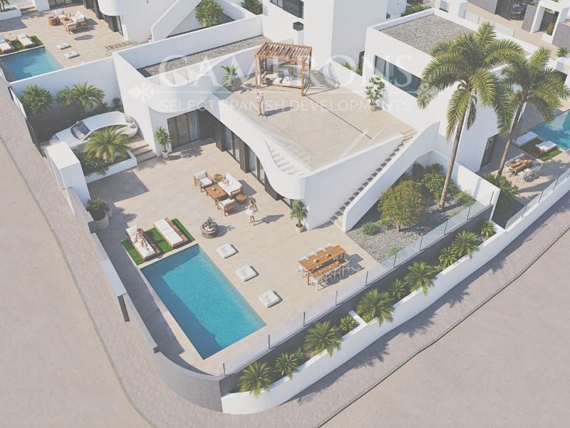 Fantastic new project of 53 villas detached or semi-detached, with 3 bedrooms, 2 bathrooms, a private pool, and parking. They are available in various sizes and layouts, including terraces or roof terraces and an optional basement.Choose from various models and layouts: a wide selection of detached and semi-detached villas in three different sizes: 98 m2, 111 m2, or 135 m2. The properties are available with one or two floors and all feature three bedrooms and two bathrooms. The larger models ...