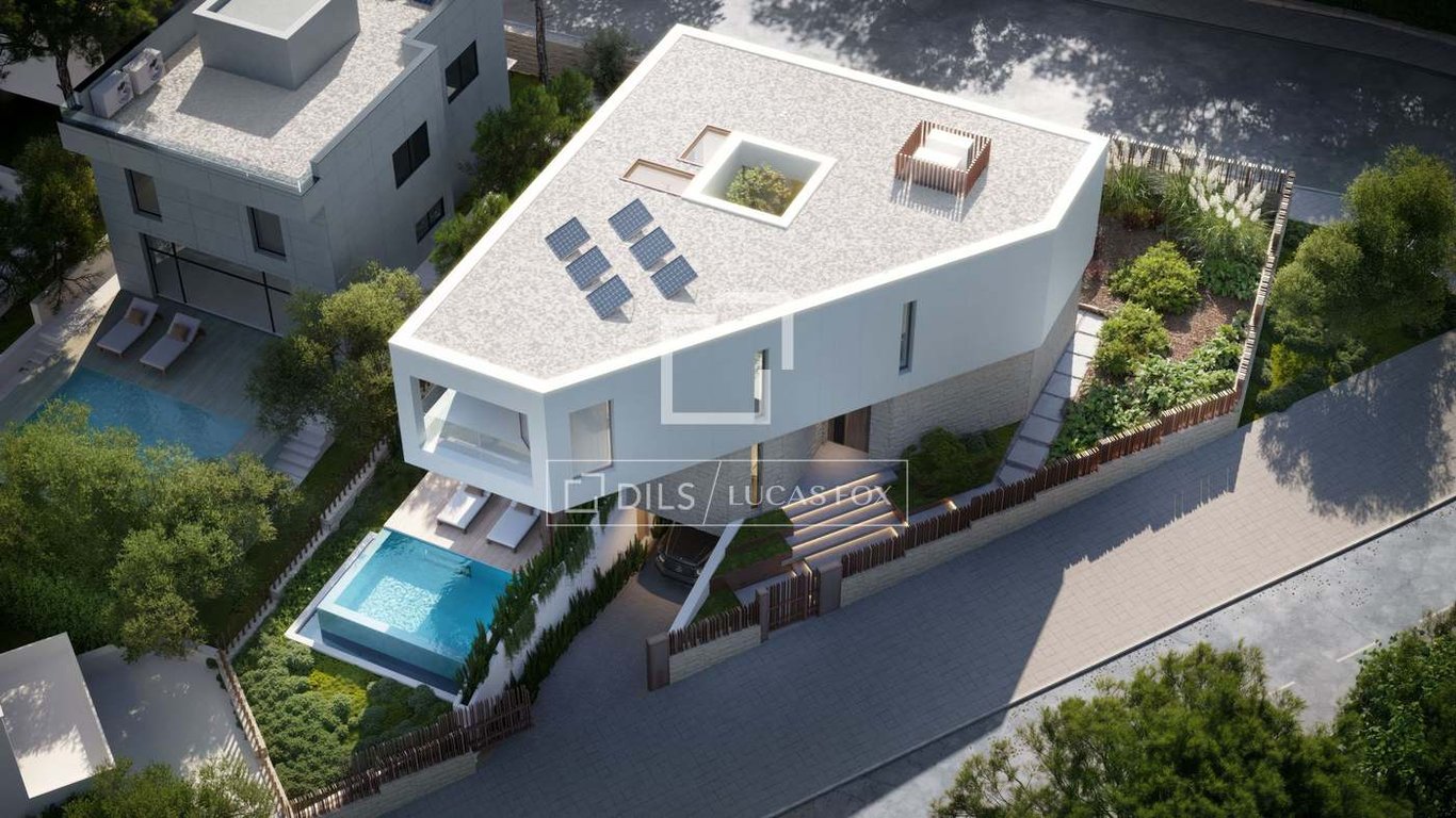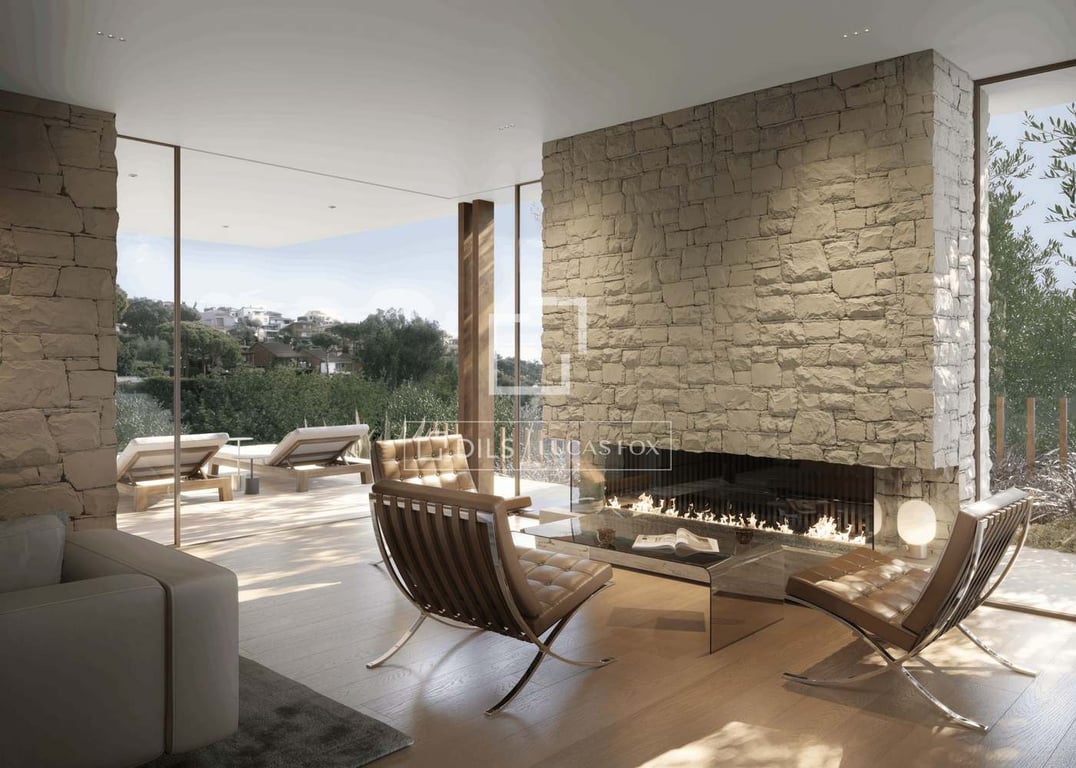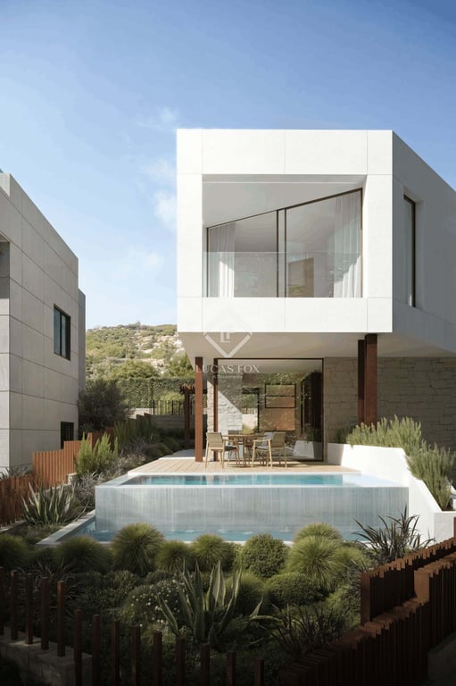 Lucas Fox presents this impressive new build home, with a constructed area of 447 m2 on a 450 m2 plot . Spread over three floors, it offers a modern and functional design, with high-quality finishes and spaces designed for maximum comfort. On the ground floor, we find a large garage with capacity for three cars, as well as a storage space, utility room, machine room, a full bathroom and a sauna. The main floor features an elegant entrance hall that leads to a bright living room with a firepl...