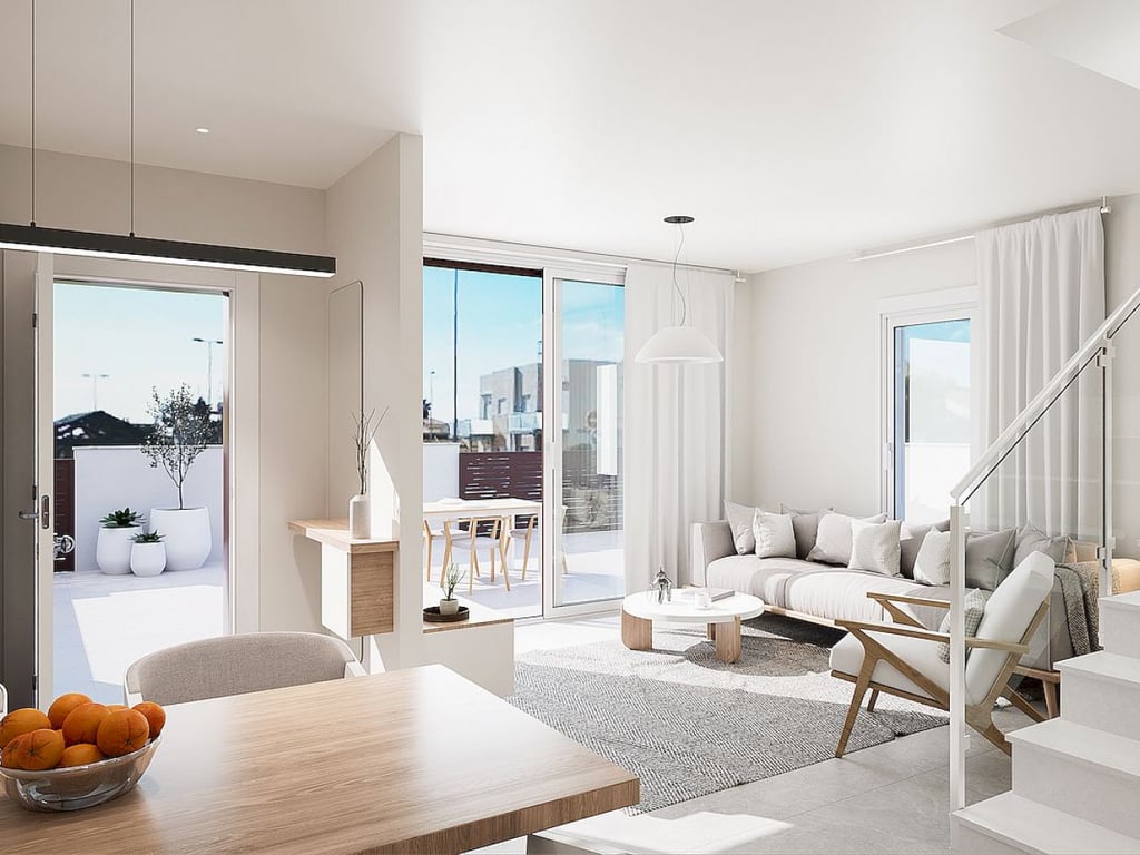 New development Resicencial Nova II consisting of town house with three bedrooms, two bathrooms, fully-fitted modern kitchen and spacious open-plan living/dining area leading to a private terrace and solarium on the top. All the town housees are designed in modern style, with private parking and spacious individual terraces, large common areas, communal swimming pool and green areas. The residential is located in second line of Las Higuericas beach, one of the best beaches of this area. Torre...