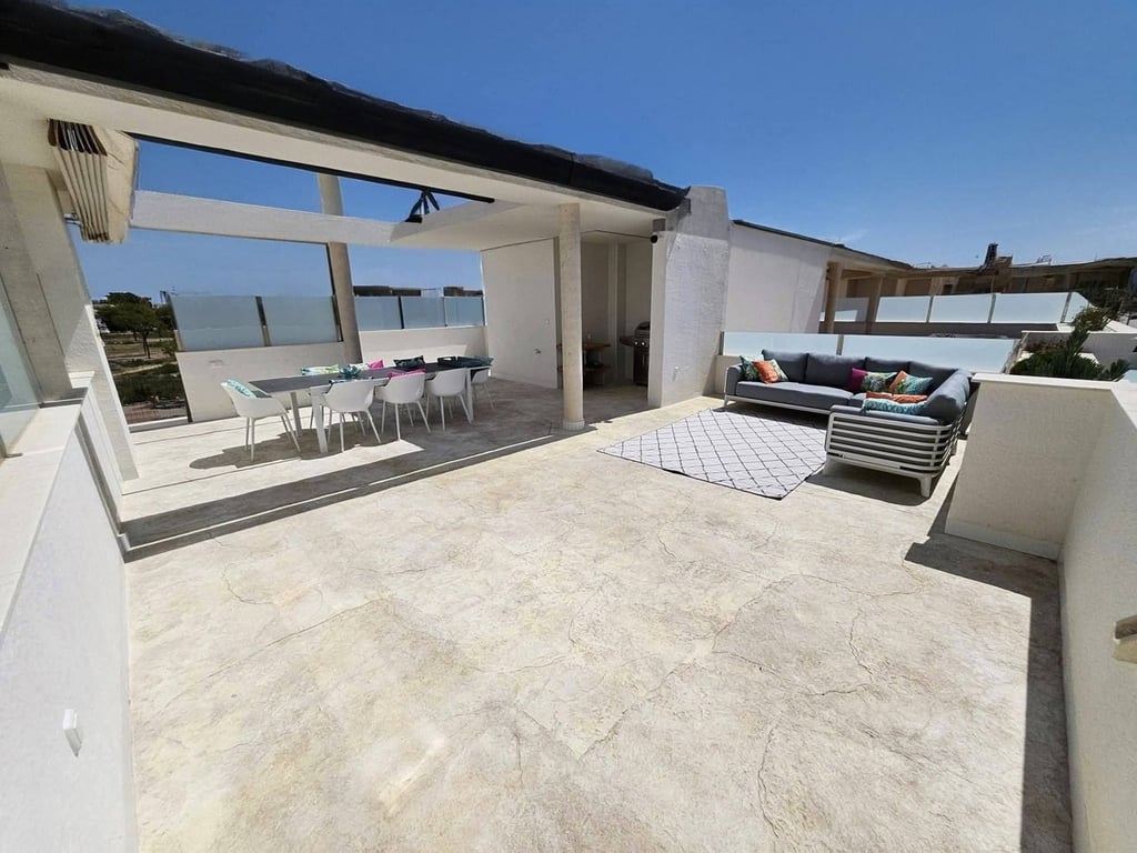 This newly completed key-ready villa in Torre Pacheco offers immaculate three-bedroom, two bathroom accommodation. The property features hot and cold climate control throughout, a master bedroom with en-suite bathroom, an open-plan kitchen, a spacious solarium with separate WC, an outdoor summer kitchen, and a private swimming pool. All essential amenities are within walking distance, while the Mar Menor beaches are a convenient 15-minute drive away. Purchased as a new construction in May 2024, ...