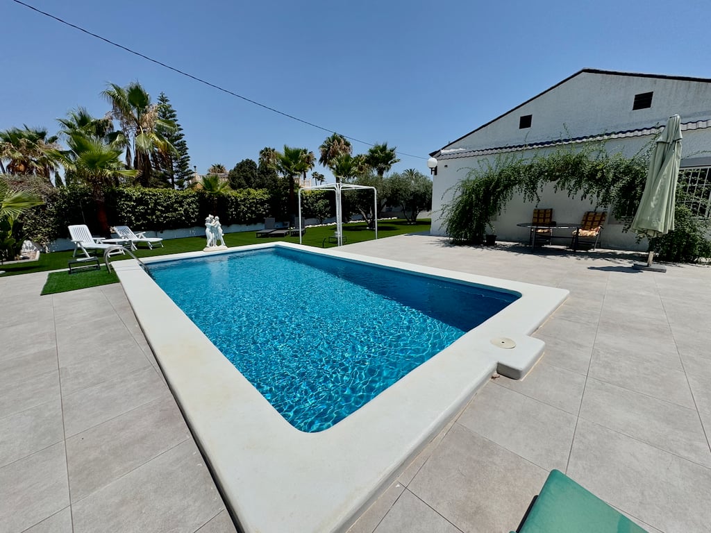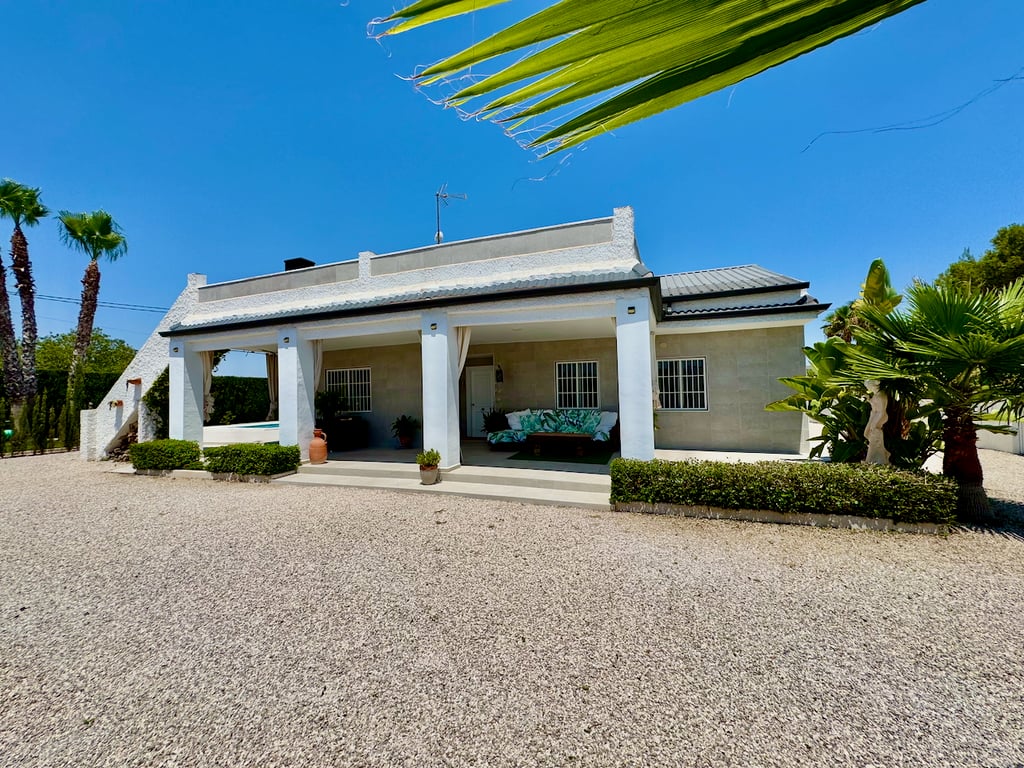 Stunning 3-Bedroom Villa with Private Pool and Expansive Gardens\r\nWelcome to this beautifully renovated 3-bedroom, 2-bathroom villa, perfectly positioned on a generous 2,400m2 plot. Ideally located, this south-facing home offers the perfect blend of privacy, comfort, and convenience—just 3 minutes from Imed Hospital, 5 minutes from Alicante Airport, 10 minutes from Alicante City, 5 minutes from Ruta Outlet Elche, 15 minutes from Blue Flag beaches, and 15 minutes from top golf courses.\r\nStep ...