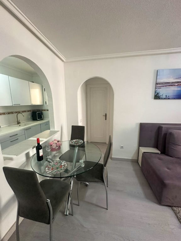 We present this cozy apartment located in a gated community next to the iconic Parque de las Naciones and the beautiful Pink Salt Lake of Torrevieja. The property features 2 bedrooms, 1 full bathroom, a bright living-dining room, a functional kitchen, and a terrace perfect for outdoor relaxation. The community offers a communal pool, well-maintained shared areas, and a peaceful environment — ideal for year-round living or as a holiday retreat close to nature, while still being near the city cent...