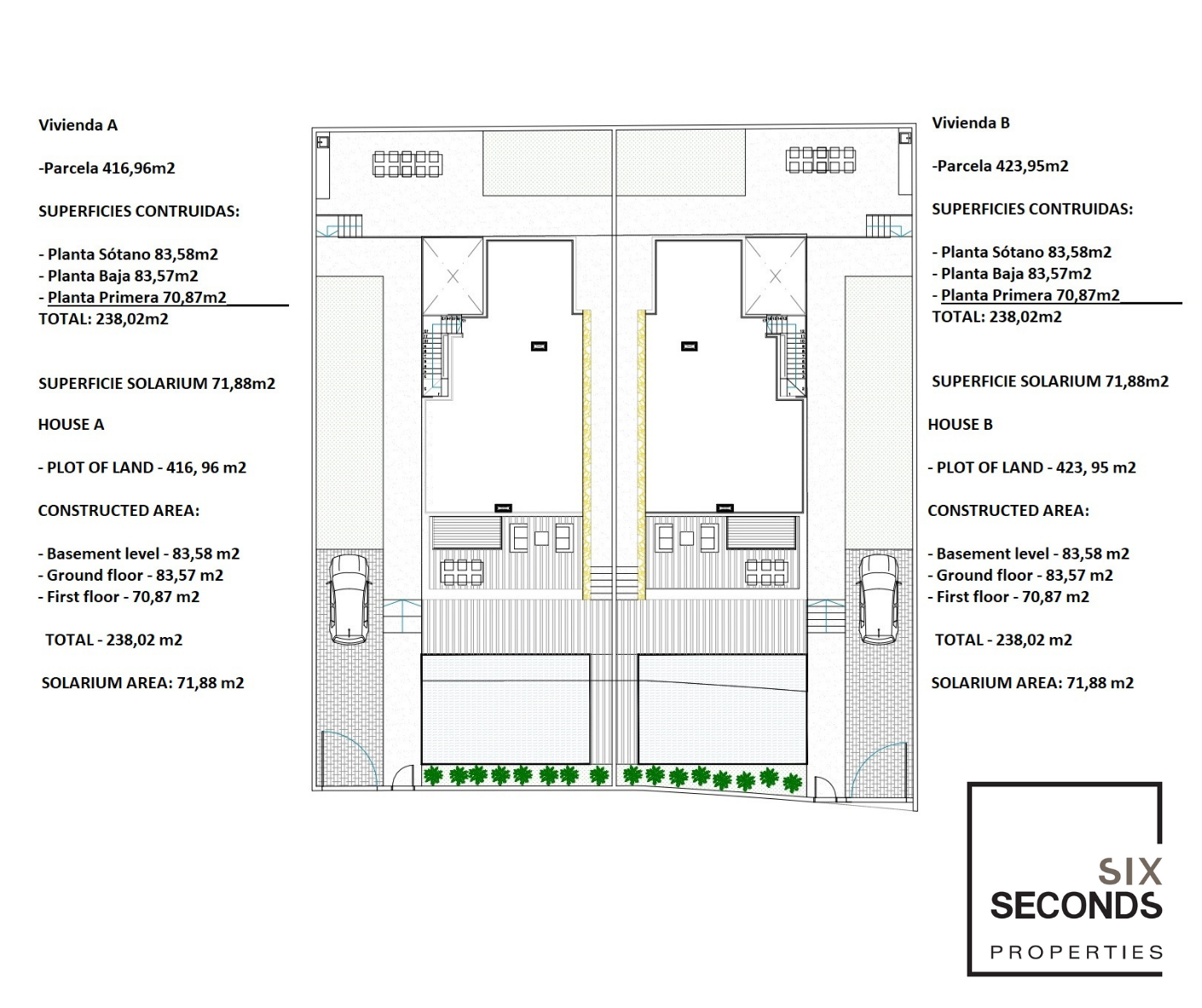 We present this new development of two adjoining villas close to the beach in Torrevieja, Alicante. The property is built with the latest technologies and the highest quality standards. This property is distributed over two floors with basement and solarium. The ground floor has a spacious living-dining room with open kitchen, 1 bedroom with bathroom, 1 toilet and a terrace through which you can access the house. The first floor has 2 bedrooms with bathrooms and a cosy living room-bookshop. Furt...