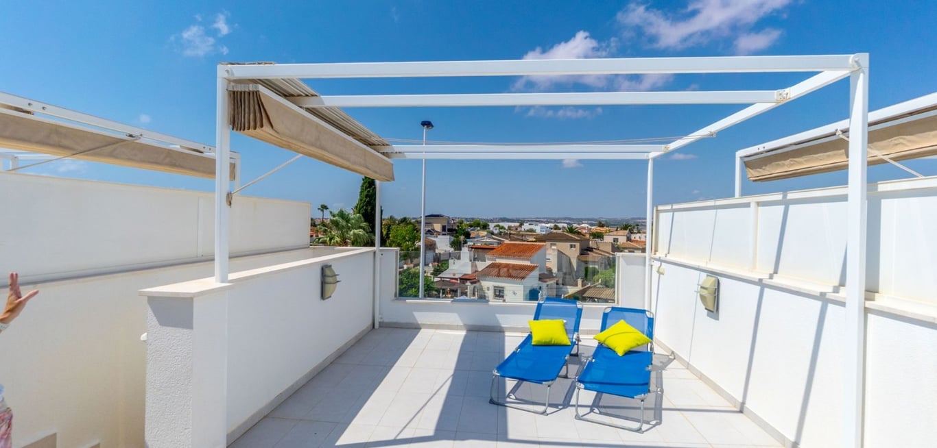 Modern Townhouse in Torrevieja – 3 Bedrooms, 2 Bathrooms & Roof Terrace with Views Welcome to this stylish and modern townhouse, located in a peaceful and exclusive complex with only 32 homes – close to all city amenities, yet in quiet surroundings. You'll be within walking distance of the beach, the town centre, and the Habaneras shopping centre, as well as cafés, restaurants, and supermarkets. On the ground floor, you'll find a bright and inviting living room, a modern kitchen, one bedroom and...