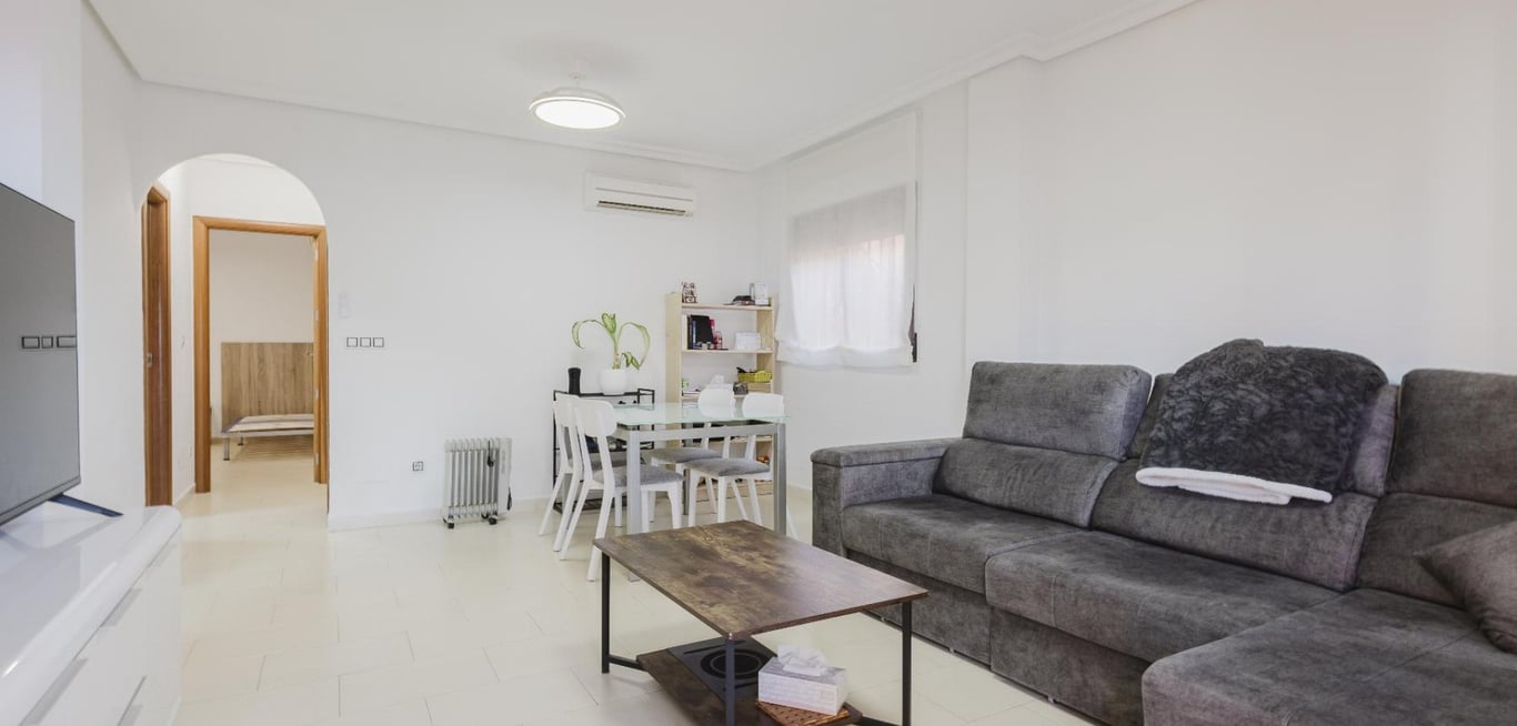 Live the essence of the Mediterranean in this detached villa in Torrevieja, a cozy and functional home ideal both as a permanent residence and for seaside getaways. With 79 m2 built on a 90 m2 plot, it offers the perfect balance between comfort and easy maintenance. The property is in good condition and is sold furnished and equipped, ready to move into. Enjoy its private solarium, perfect for relaxing in the sun or sharing outdoor moments, as well as a communal swimming pool to cool off during ...