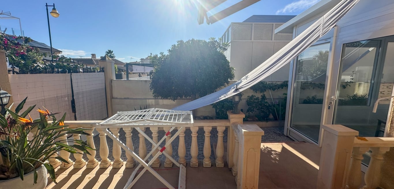 Stunning Coastal Townhouse – 300m from the Mediterranean Enjoy the Mediterranean breeze in this impeccable townhouse, perfectly located just 300 meters from the coastline. This property seamlessly combines functional design with modern comfort in one of Torrevieja’s most exclusive areas. Property Highlights: Interior: A bright, open-plan living area featuring a modern, fully-equipped American-style kitchen.Unique Feature: A climate-controlled sunroom, perfect for an inspiring home offic...