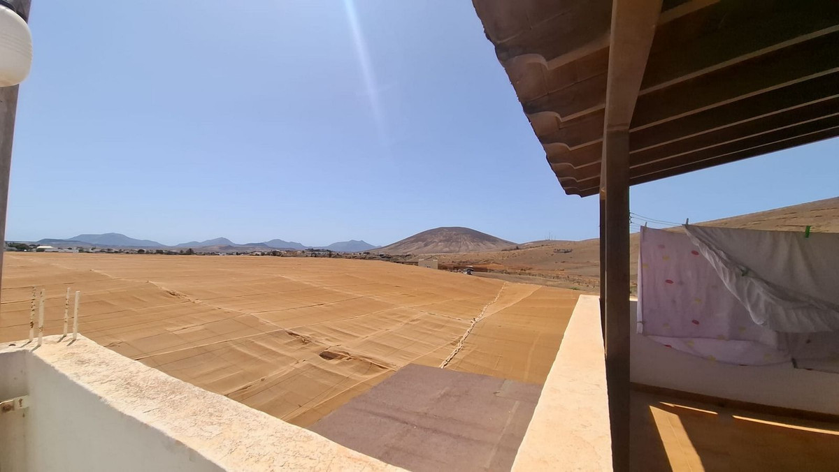 YOUR DREAM HOME presents a very interesting opportunity to purchase a cortijo with farmland in the picturesque village of Tuineje. The main property features a large garage, incuding a 2x3m2 well, a kitchen area, extra room and small bathroom with access to the huge 7,500m2 greenhouse where you can harvest potatoes, tomatoes etc and currently has pitaya fruit growing. An outside staircase takes you to the 2 bedroom, 1 bathroom apartment on the upper floor with a private terrace and incredible o...