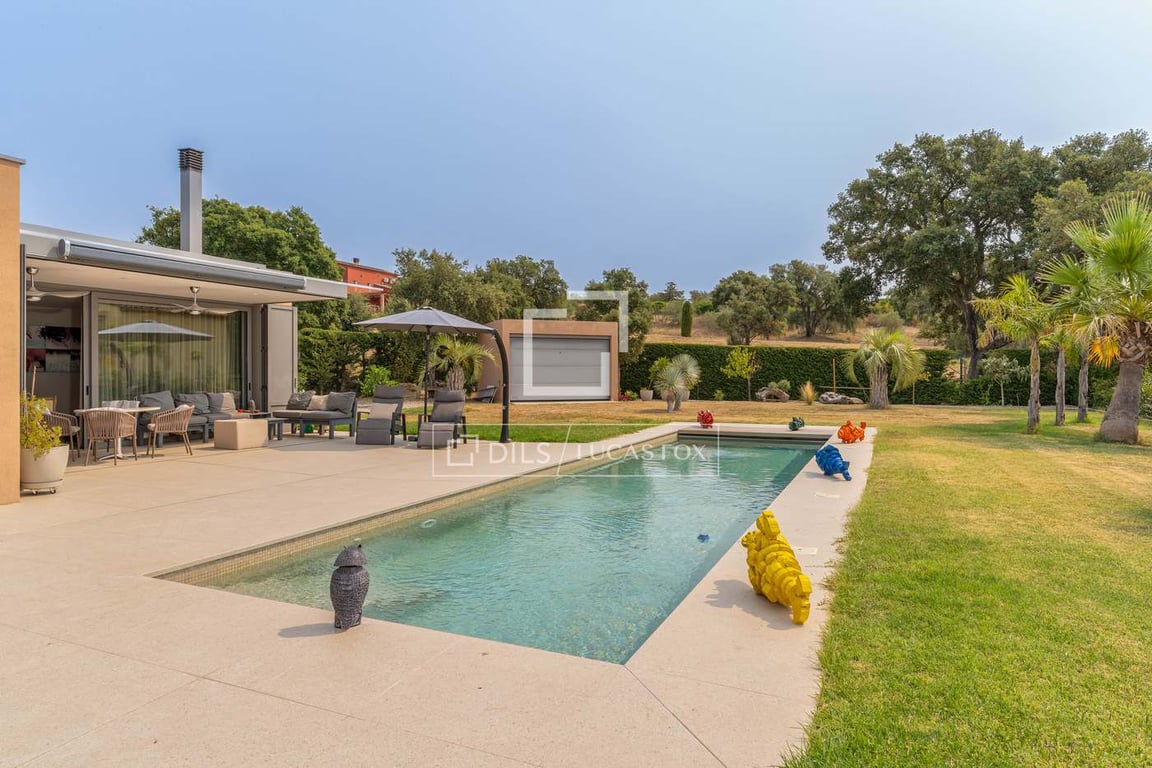 Discover this elegant contemporary villa located in the exclusive residential area of Golf Peralada, a privileged enclave surrounded by rolling hills and golf courses, ideal for those seeking a peaceful, natural setting. Spread over two floors, the property offers a functional and spacious layout . On the main floor , a bright lobby welcomes you and leads to the spacious dining room living room with a fireplace, perfect for relaxing moments or social gatherings. This space is integrated with a...