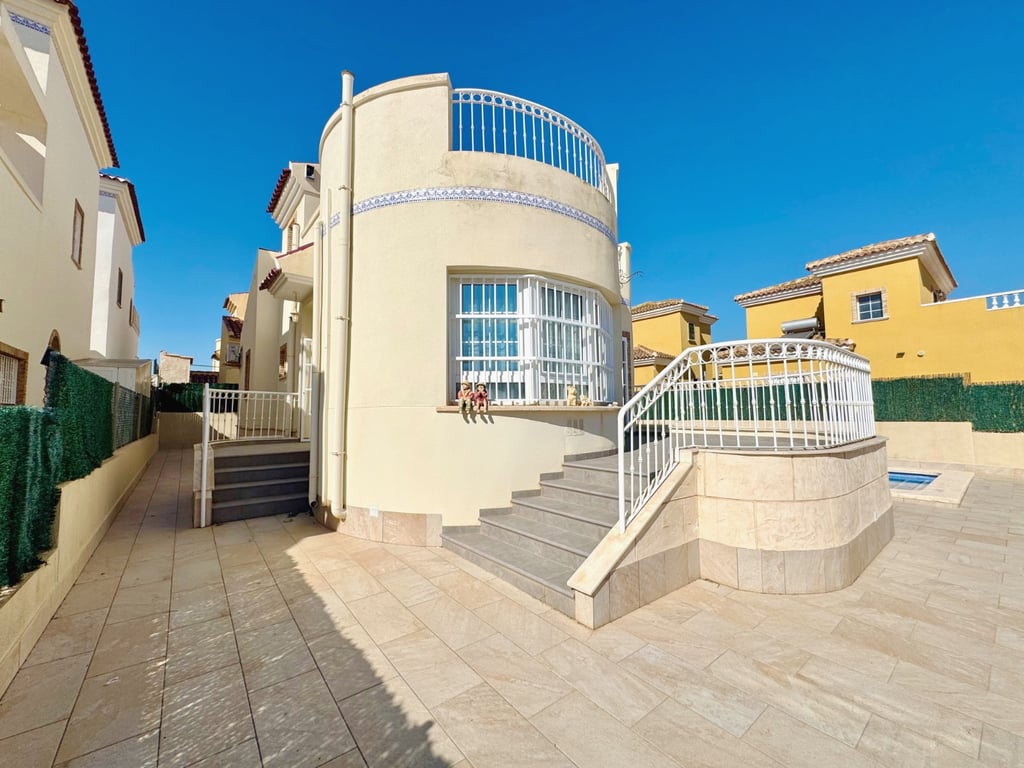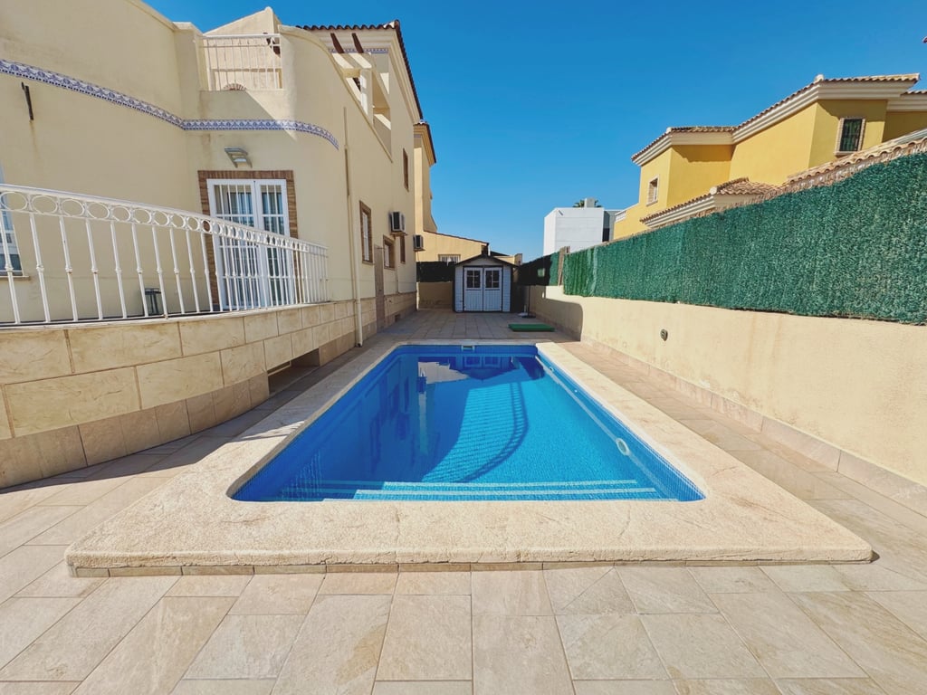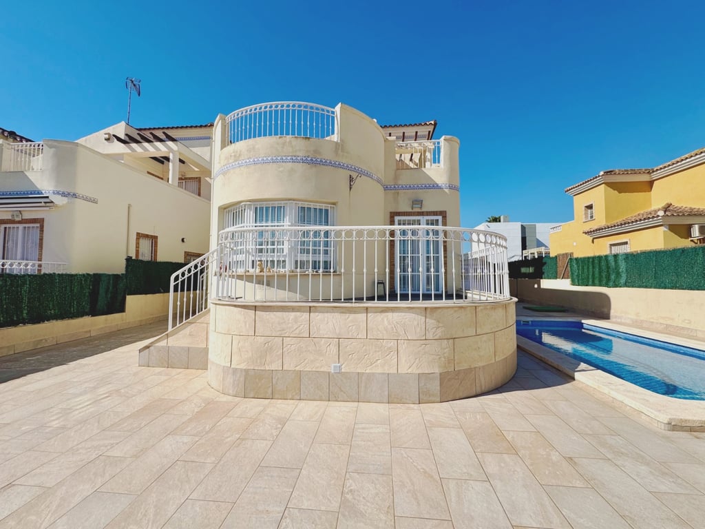 This stunning villa is located in the prestigious El Raso area of Guardamar del Segura, designed to offer spaciousness, comfort, and style in every detail. With 160 m2 of built space on a 400 m2 plot, the property combines bright interiors with attractive outdoor areas to enjoy the Mediterranean sun. The home features five bedrooms and three bathrooms, providing generous space for the whole family. It includes a fully furnished kitchen, built-in wardrobes, and air conditioning to ensure maxim...