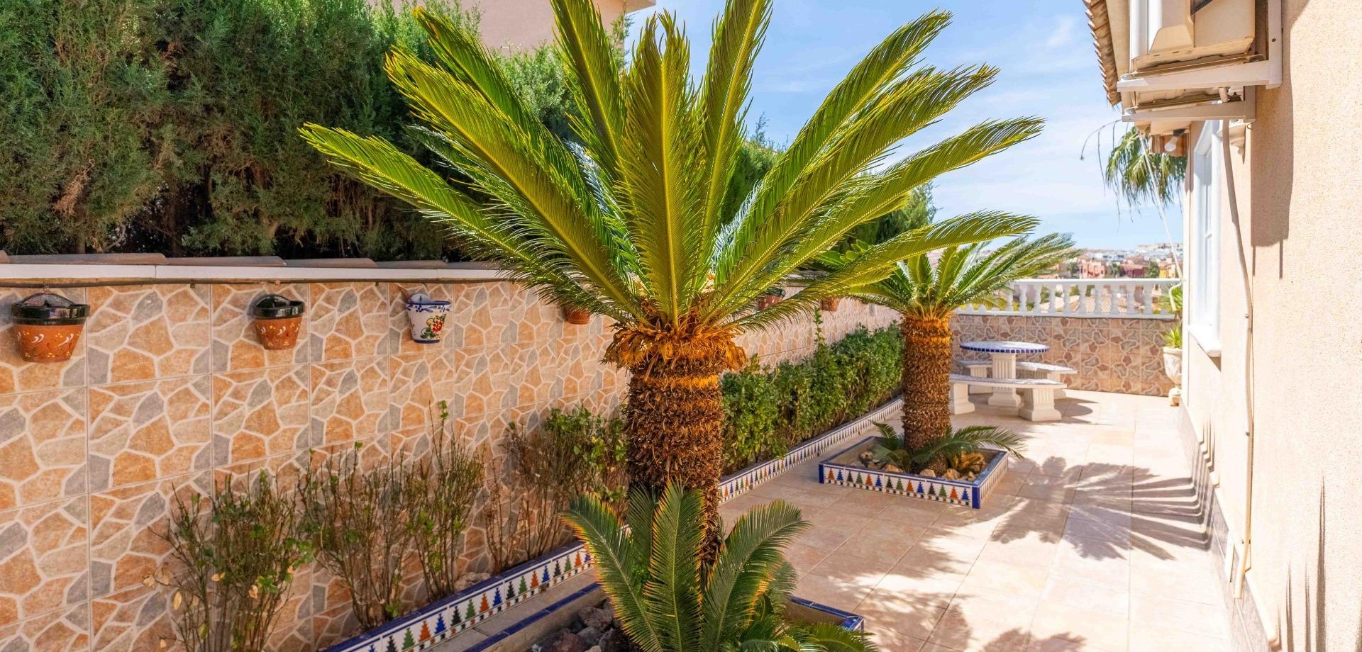 I present this detached villa with a private garden. It is located in a quiet residential area in Punta Prima, Orihuela Costa. It is just 10 minutes from the beach and 9 minutes from La Zenia Shopping Center.~~The villa has been renovated and furnished. It has 182 m2 of built area, distributed over 2 floors. Upon entering, we find a beautiful garden with a seating area and on-site parking.~~Upon entering, we find a large renovated living room, a separate fully equipped kitchen, and a laundry roo...