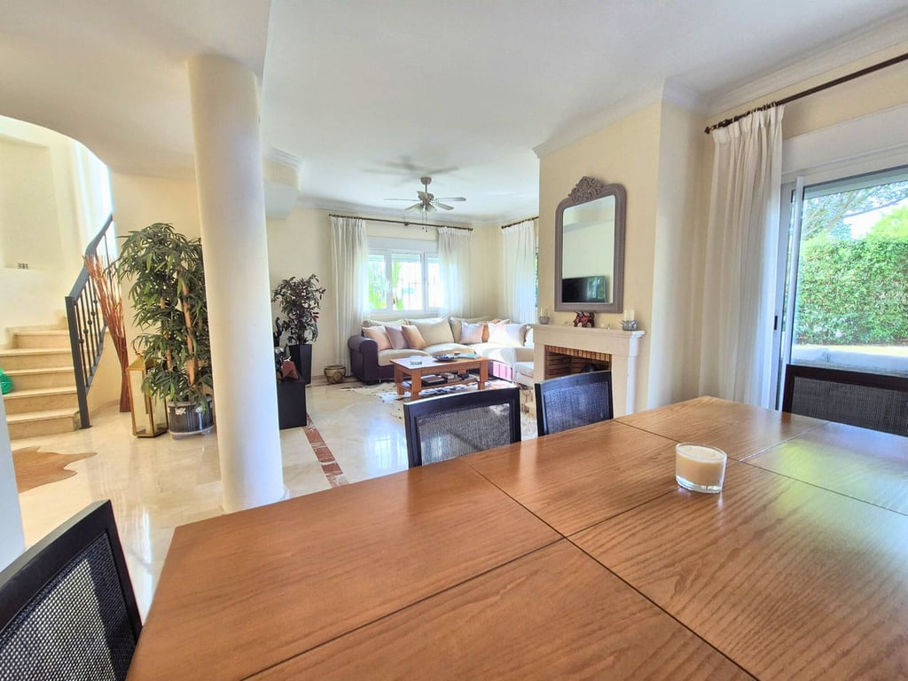 Nestled within the prestigious San Roque Club, this beautiful 3-bedroom semi-detached house offers the perfect blend of comfort, privacy, and scenic beauty. Surrounded by nature and two world-class golf courses, the community provides 24-hour security and a peaceful, exclusive setting.The home boasts a spacious living room with a cozy fireplace and a dining area, connected to a large, fully equipped kitchen via a wide opening that brings in natural light and a sense of flow. From the living room...
