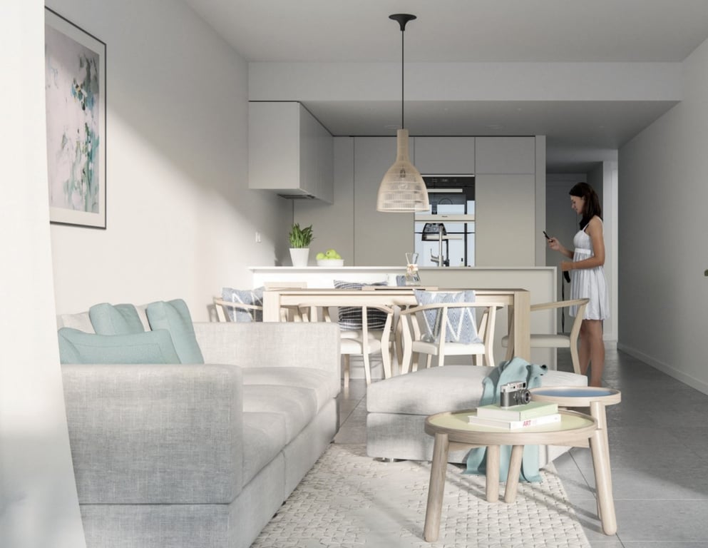 We present this unique residential complex of 66 homes in Villajoyosa designed with the aim of making the complex a vast Mediterranean Sea vantage point. 5 terraced buildings that adapt to a steep slope topography allowing each home to have unbeatable views. Swimming pools that blend with the sea, pleasant outdoor gardens, leisure areas and promenades, confer the residential area with a balanced dialogue between modernity and natural scenery Enjoy the Mediterranean Sun as if you were in the s...