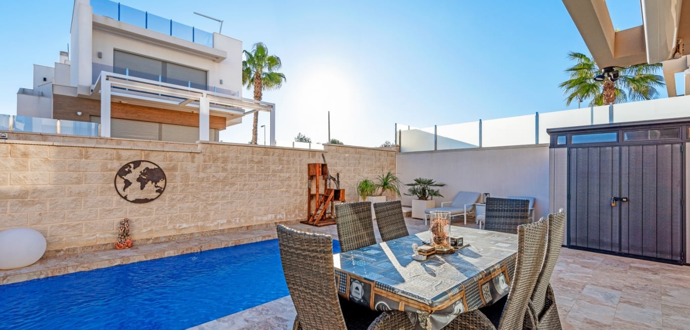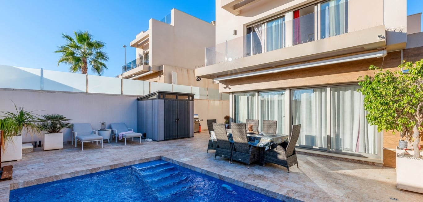 This beautiful 3 bedroom, 3 bathroom villa is the perfect combination of comfort and charm. Located in a quiet area of Orihuela Costa, it is an ideal choice for a second home for a family or an intelligent investment opportunity. One of the highlights of this villa is the large private solarium, perfect for sunbathing, barbecuing or simply enjoying the stunning lake views that each home offers. The interior is bright and inviting, with plenty of space to relax and entertain. Private pool. Ideall...