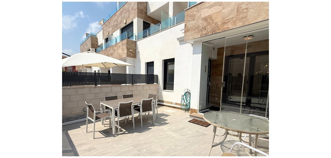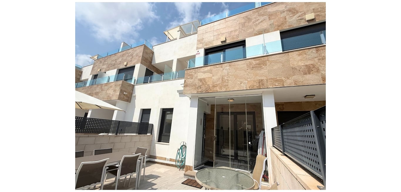 Elegant townhouse in the most sought-after area of Orihuela CostaThis two-floor townhouse, built in 2017, combines modern design, efficient use of space and a practical layout. Facing southeast, the property enjoys beautiful natural light throughout the day. The home features3 spacious bedrooms, 3 bathrooms, and ample wardrobe space that provides excellent storage. Large outdoor areas at both the front and back of the property offer versatile options for outdoor living and entertaining. Th...
